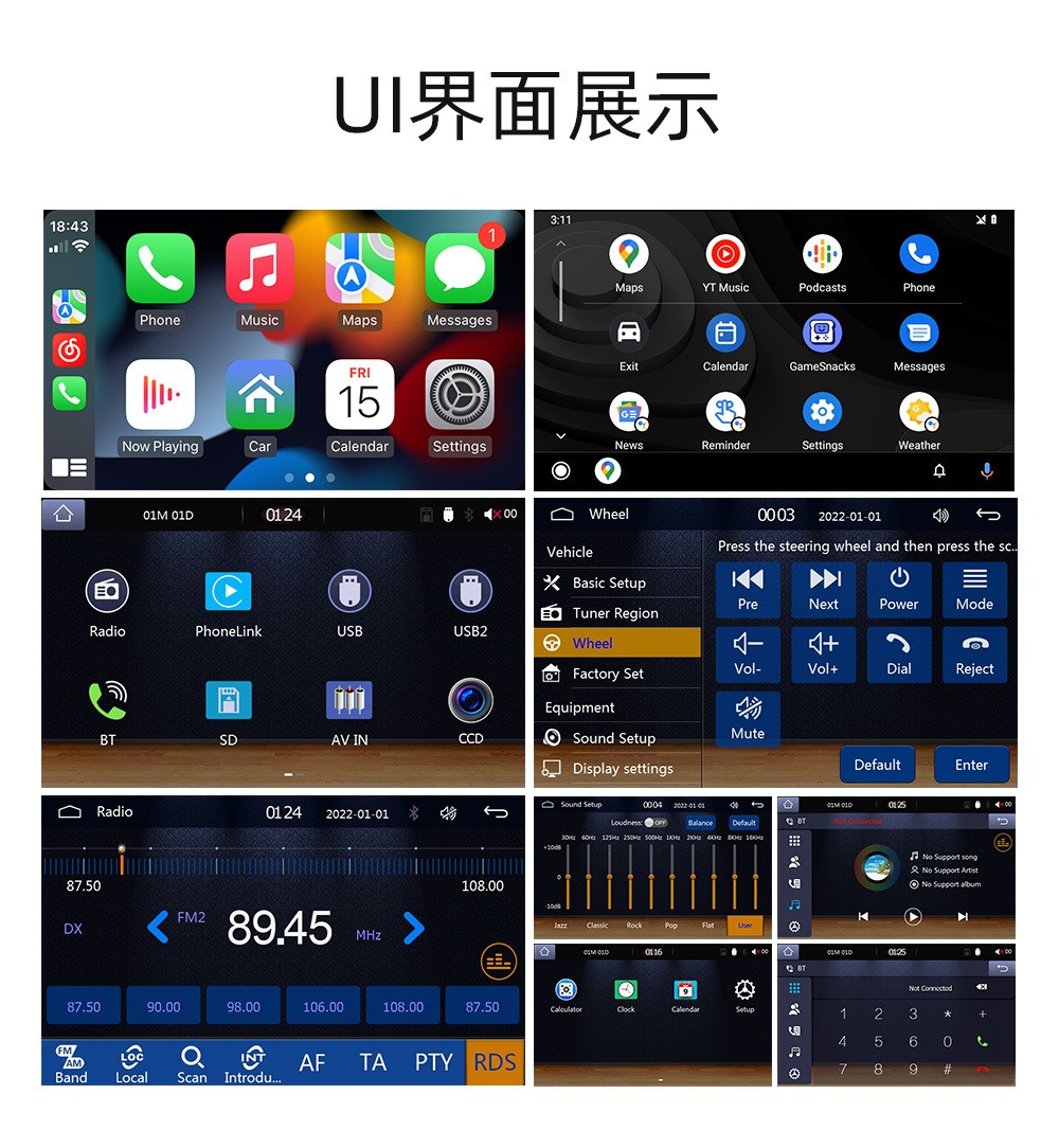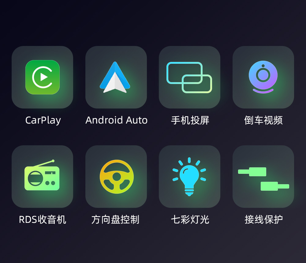 •手机车载模式,连接CarPlay或Android Auto可以让你的机器使用手机的各项功能(支持无线连接和有线连接)
