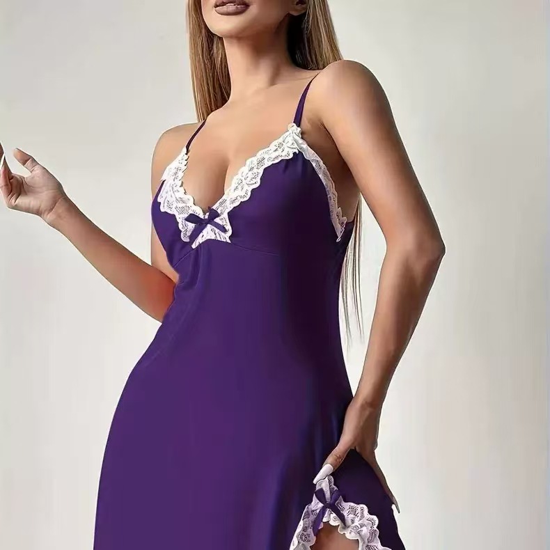 Молочный шелк, европейский и американский большой размер, сексуальное женское белье, пуш-ап, сексуальный комплект с глубоким V-образным вырезом и бантом по бокам, тонкая ночная рубашка на подтяжках