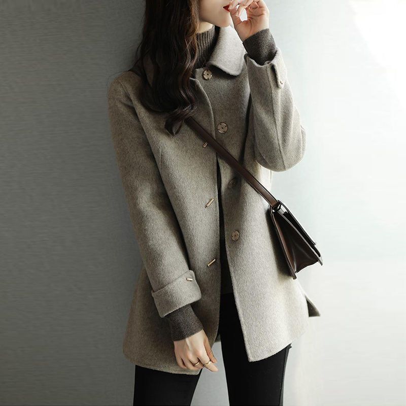 Новое элегантное короткое шерстяное пальто в корейском стиле 2025 года для миниатюрных женщин, приталенная шерстяная куртка с длинными рукавами для женщин.