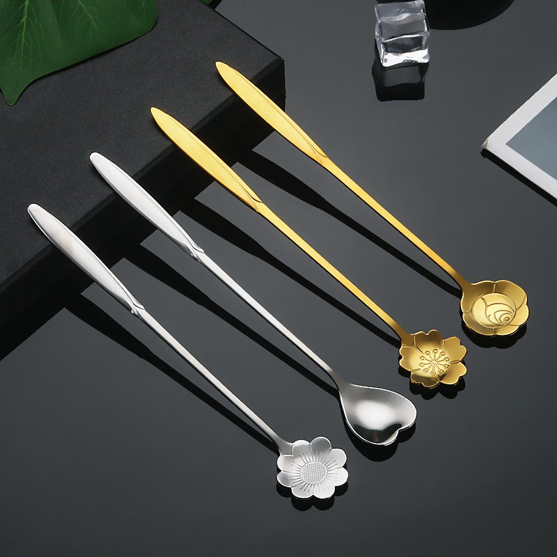 Ложка из нержавеющей стали с цветком вишни, ложка с цветком птичьего гнезда, офисная ложка для перемешивания, десертная кофейная ложка, свадебная сувенирная ложка
