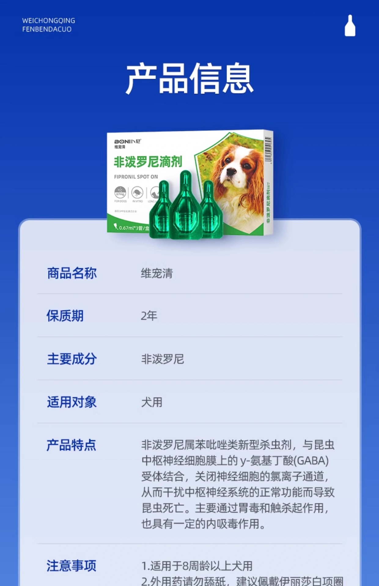 Средство для дегельминтизации собак Buni, капли с фипронилом, внутреннее и внешнее дегельминтизирующее средство, средство от блох и клещей для домашних животных