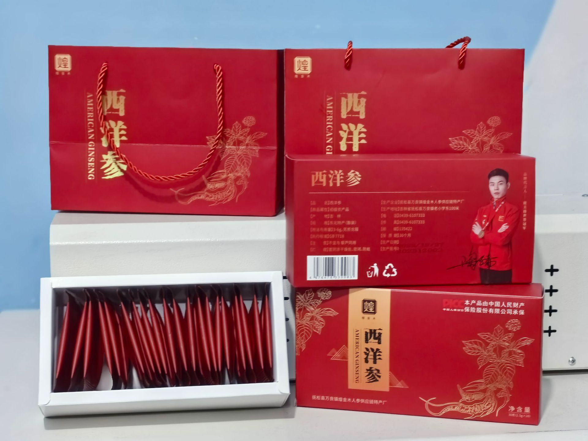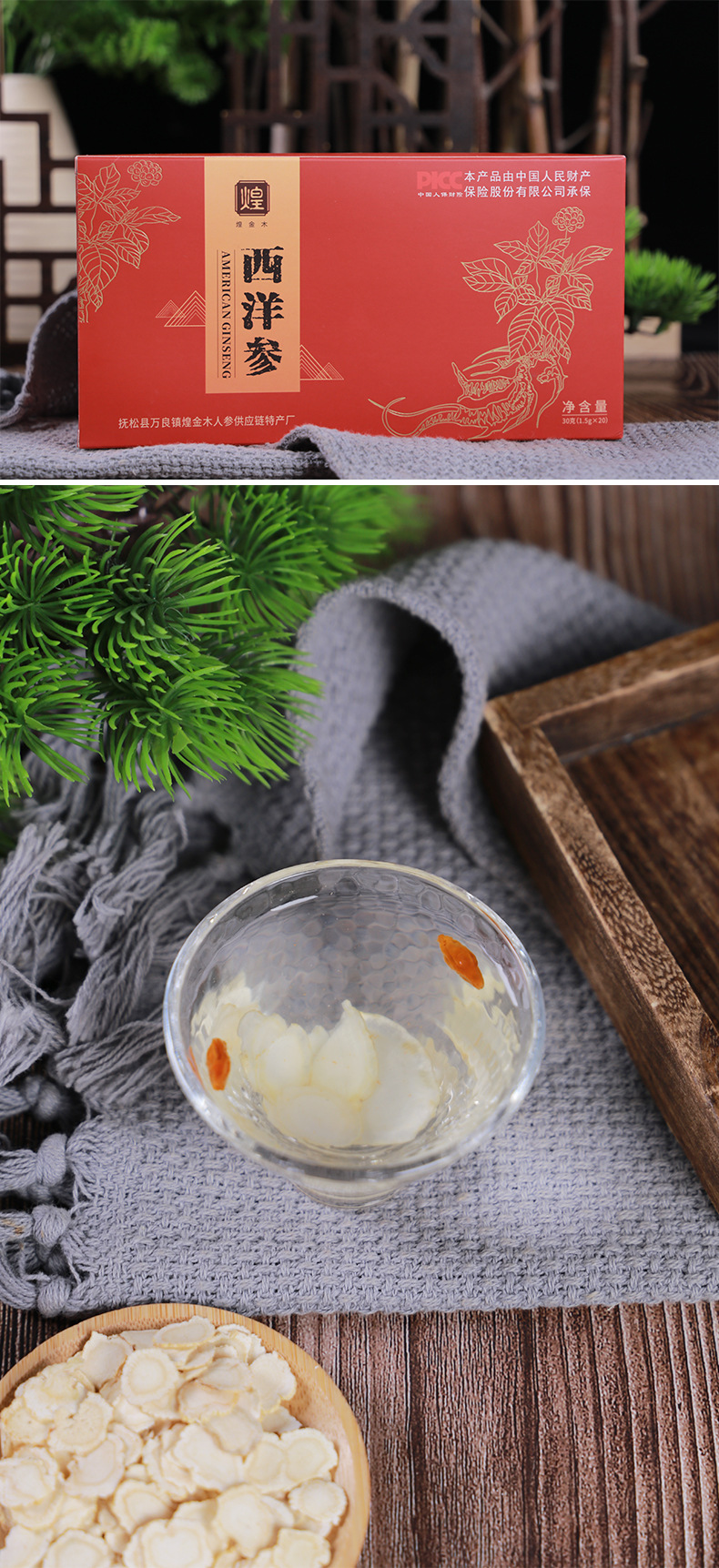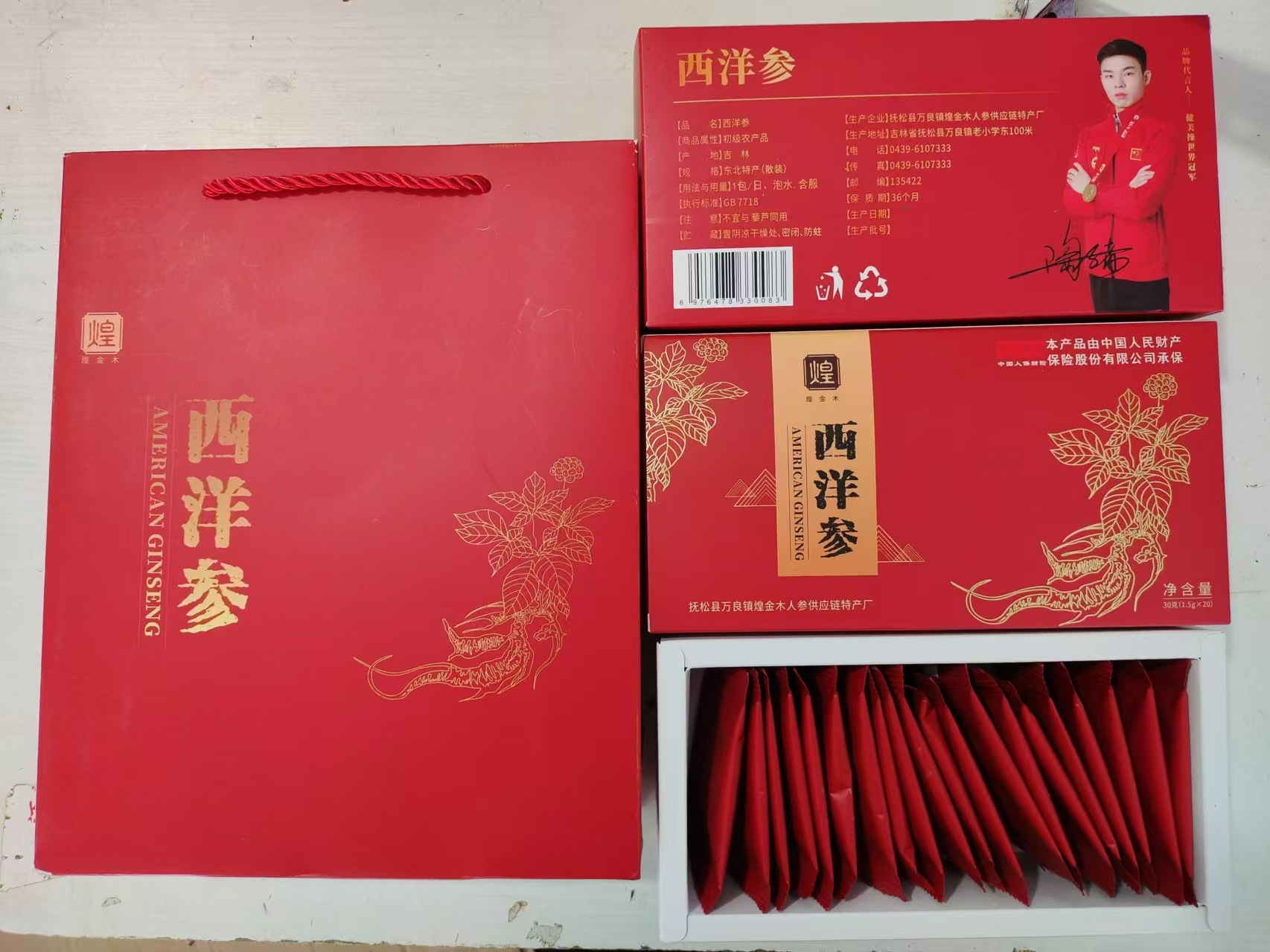 Американский женьшень, 30 г/упаковка; Сумка + 2 коробки американского женьшеня; Пробный пакет (1 маленький пакет)