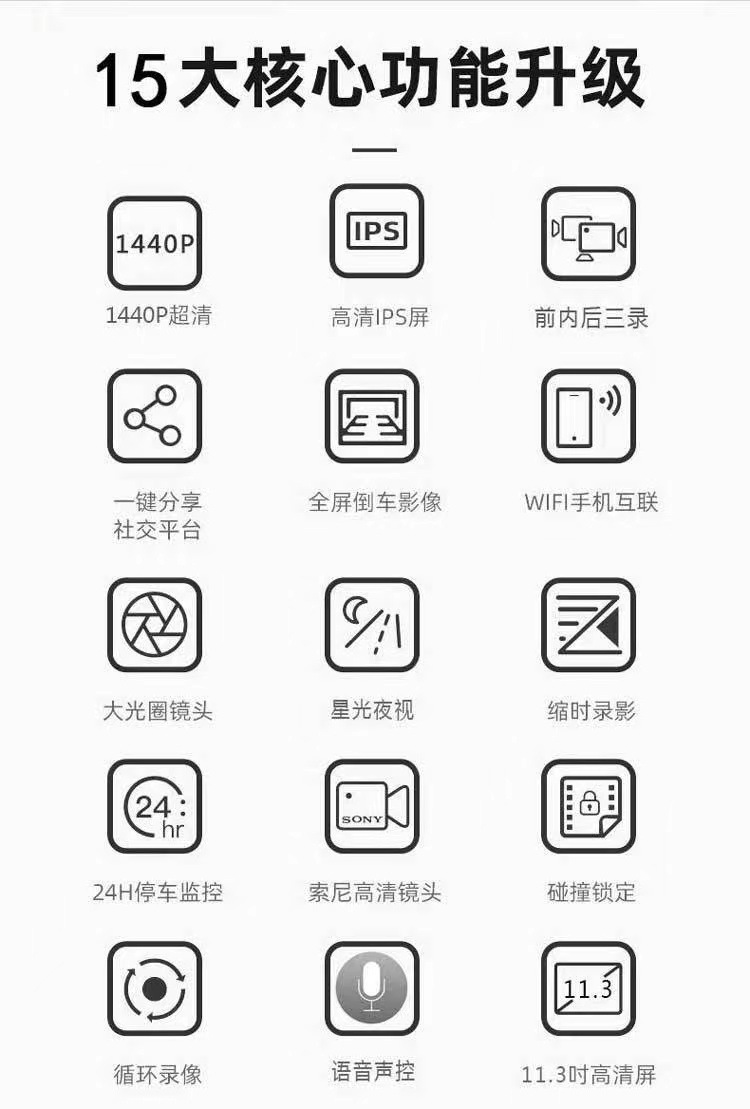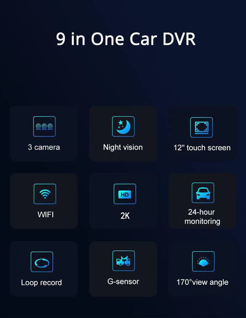 3 объектива рекордера, реверсивная визуализация, обнаружение движения, мониторинг парковки,
