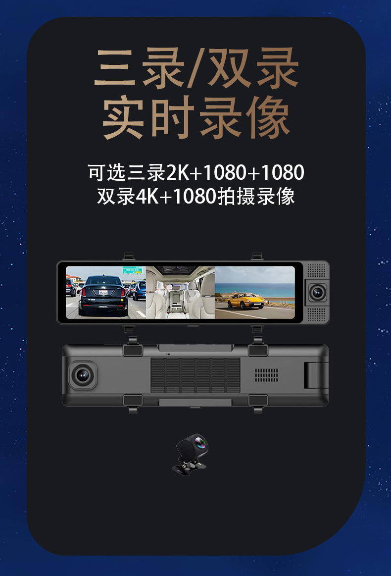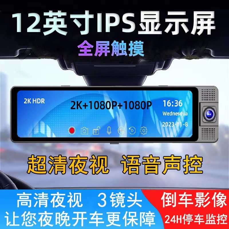 Новое Автомобильное видео с 3 объективами 2K HD зеркало заднего вида диктофон с голосовым управлением и реверсивным изображением Сеть проката автомобилей