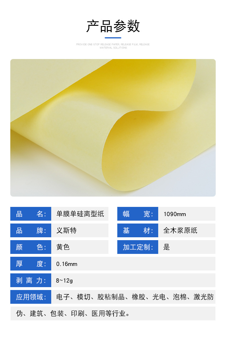 8-12 г одиночная пластиковая одинарная силиконовая желтая бумага для выпуска, полная древесная маслость, тисненая антипригарная силиконовая бумага, самоклеящаяся бумага для покрытия