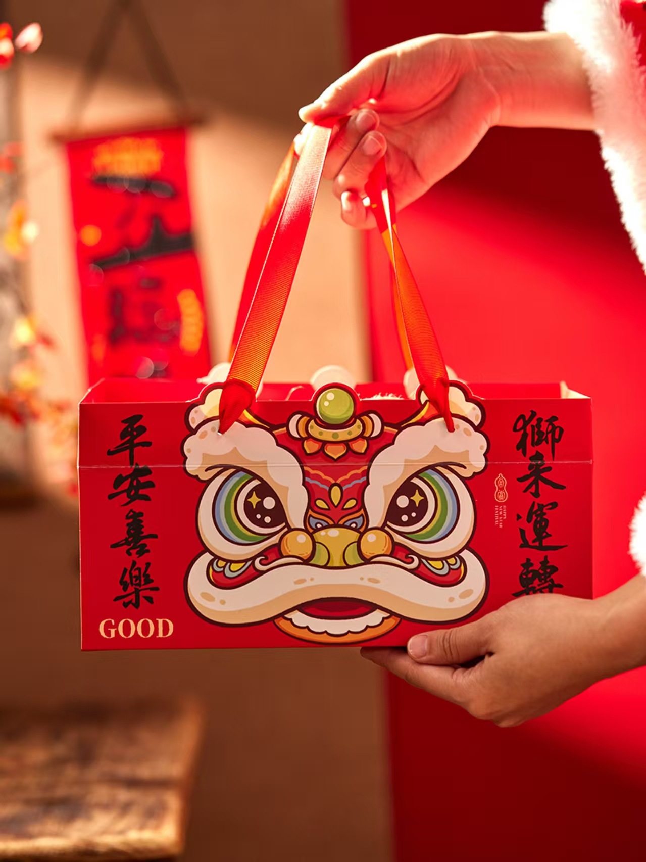 Счастливого Нового года, принесите богатство и сокровища, лев приходит бегать, богатство катится, Чжэнли