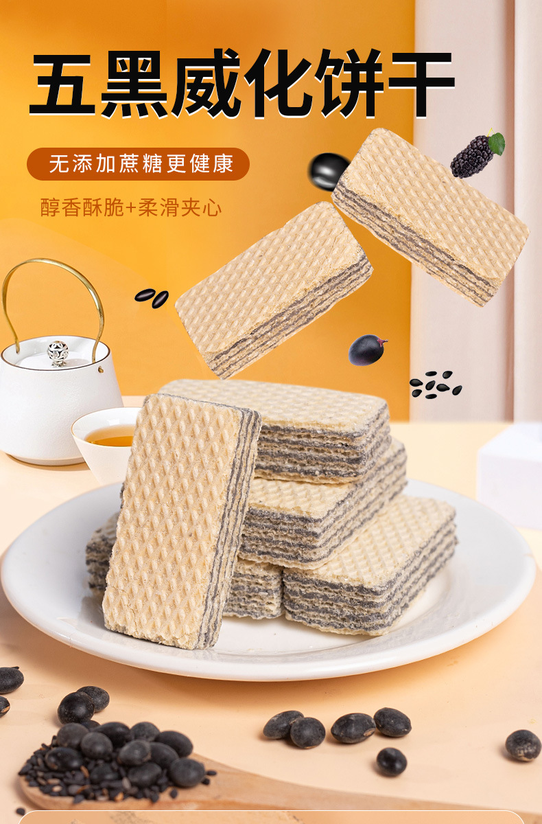Пятичерный вафельный бисквит черный Тутовый черный мушмула черная фасоль черный кунжут грубозерновая мушка Замена случайной закуски Заводская поставка