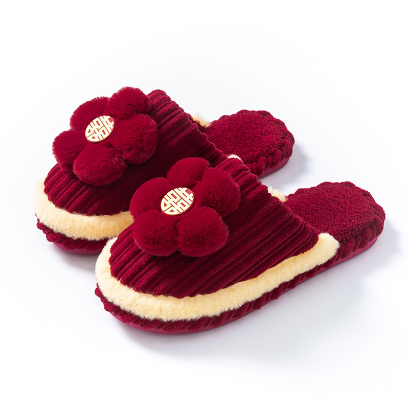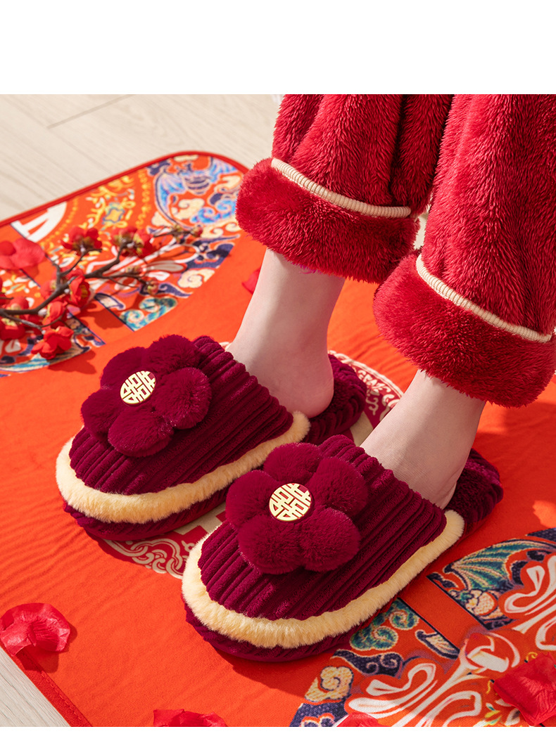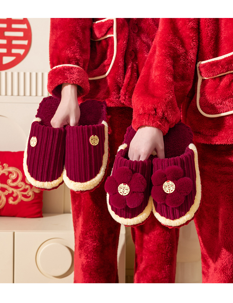 Свадебные Тапочки Пара Осень и зима 2023 новые праздничные красные пара домашние Нескользящие на флисовой подкладке Теплые Свадебные