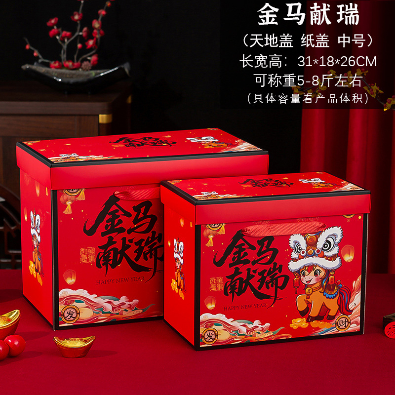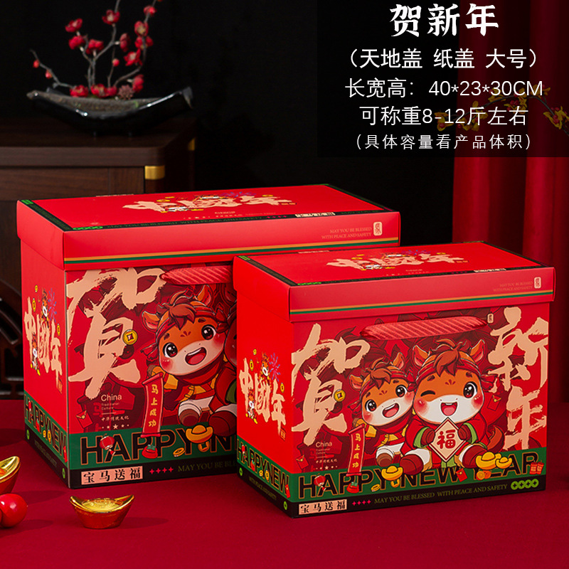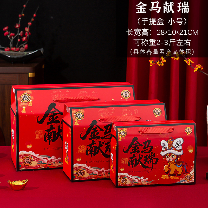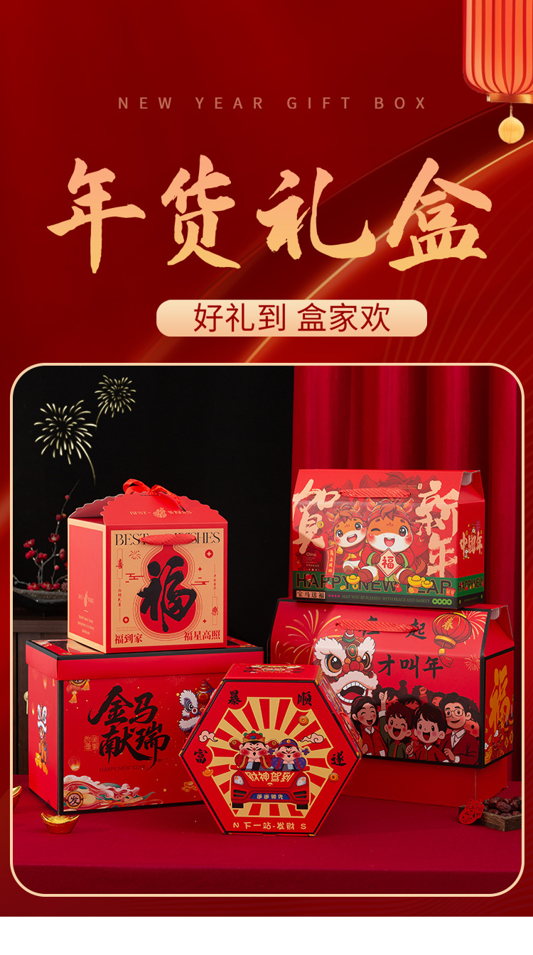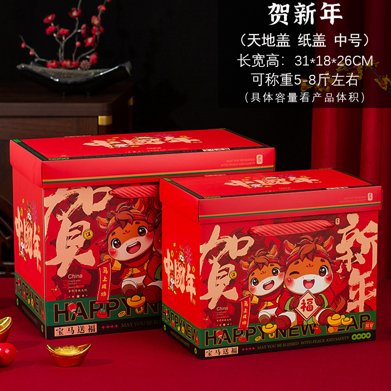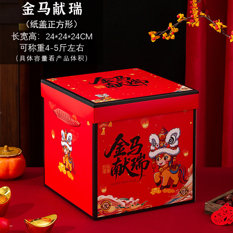 Подарочная упаковка к Китайскому Новому году 2026 года (Год Лошади): пустая коробка для орехов, готовых блюд, специальных закусок, сухофруктов. Новогодний подарочный набор.