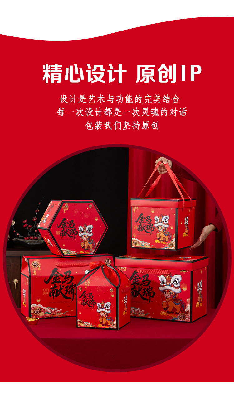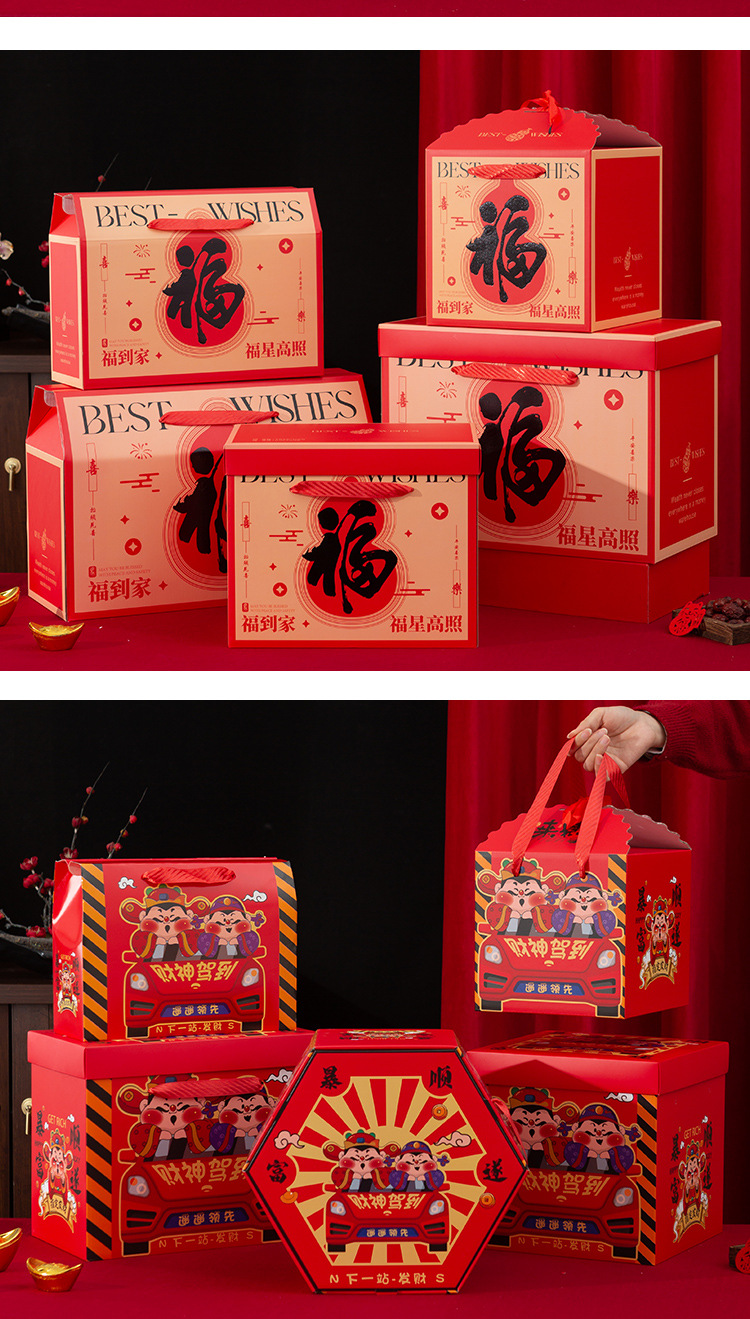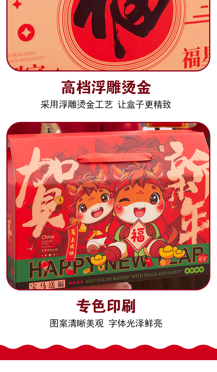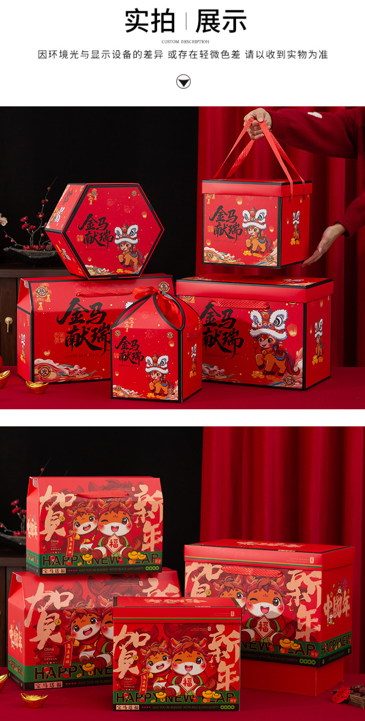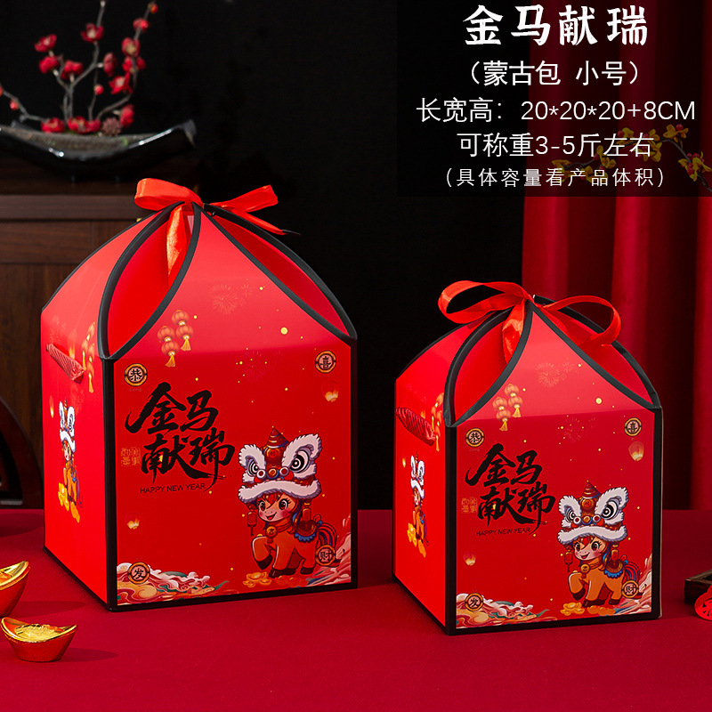 Подарочная упаковка к Китайскому Новому году 2026 года (Год Лошади): пустая коробка для орехов, готовых блюд, специальных закусок, сухофруктов. Новогодний подарочный набор.