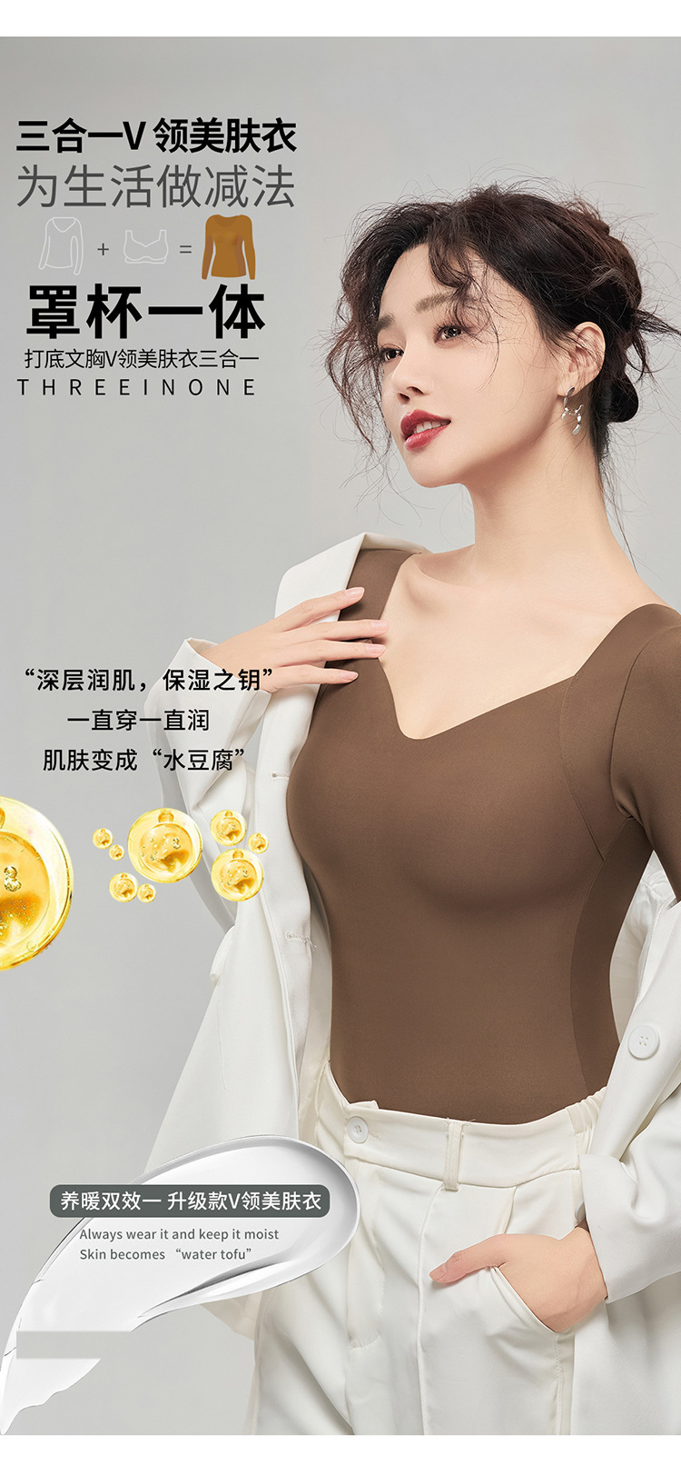 Натуральная гиалуроновая кислота, красивая одежда для внутренней кожи, осенне-зимняя верхняя одежда, нижнее белье, бесшовное, супер большое эластичное термобелье с нагрудной подкладкой