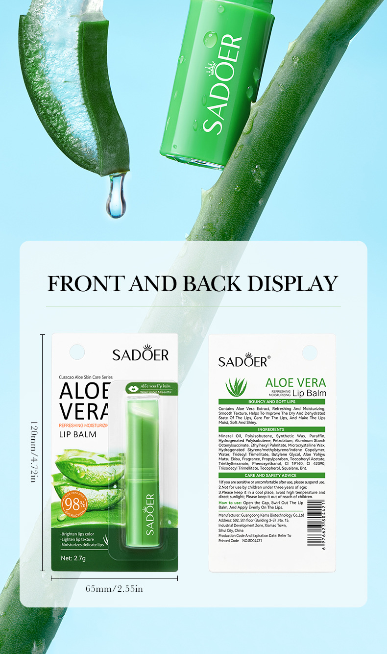 SADOER Увлажняющий бальзам для губ с алоэ вера (версия на иностранном языке), 2,7 г
