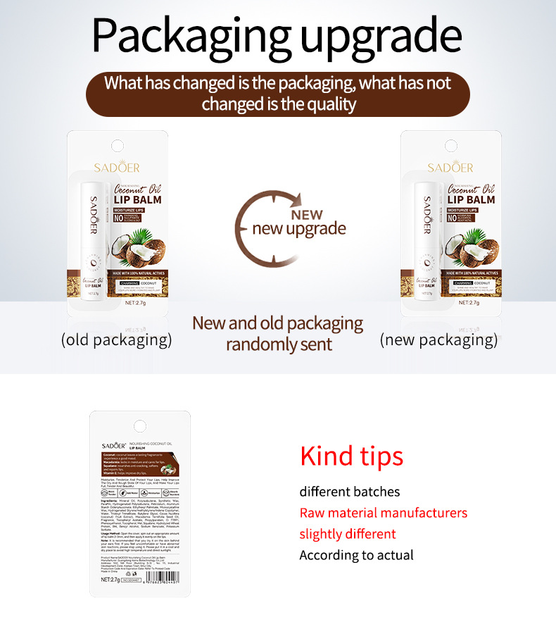 Полный английский SADOER Кокосовый бальзам для губ увлажняющий Увлажняющий анти-сухой уход за губной помадой трансграничная Внешняя торговля