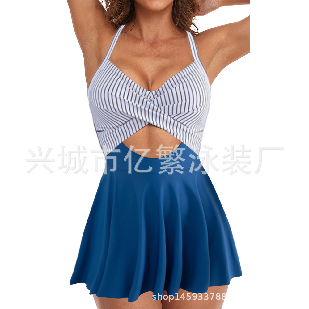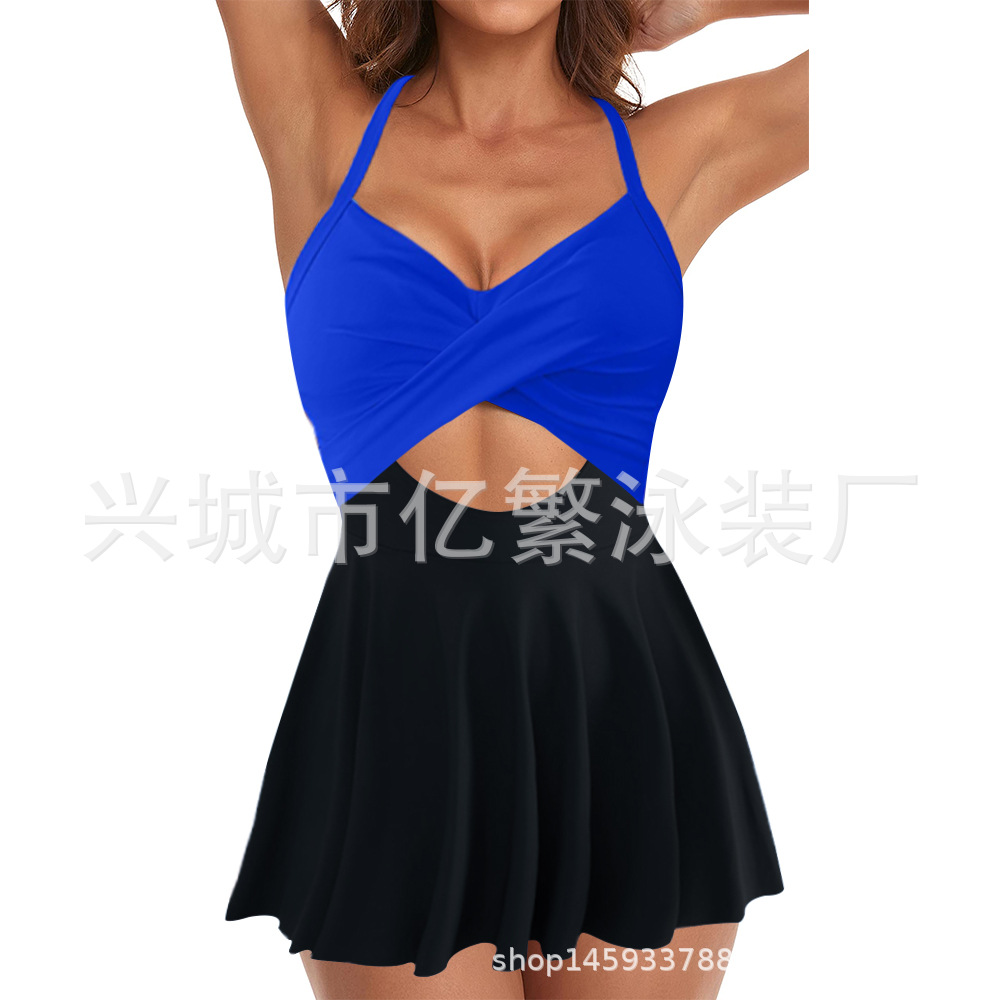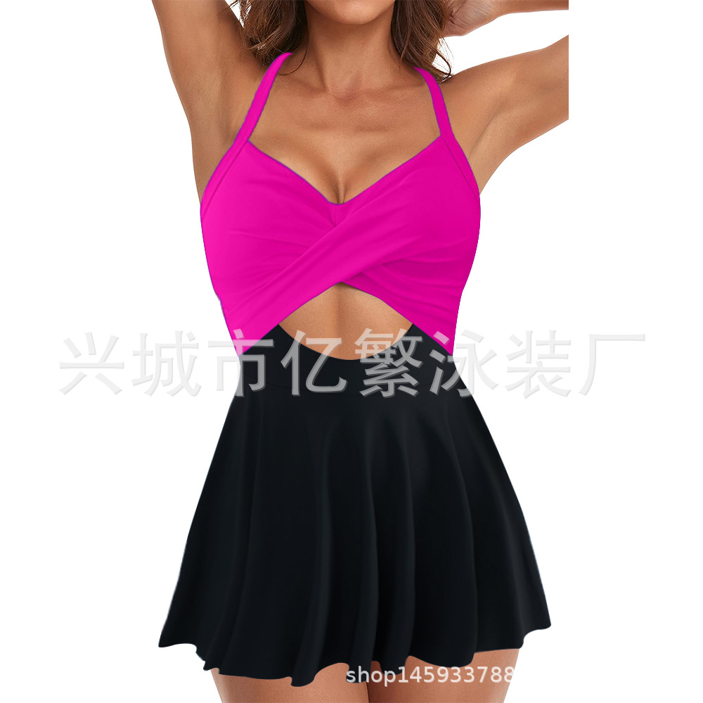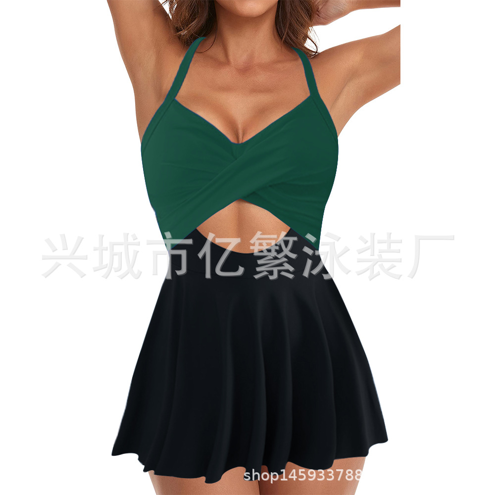 Европейская и американская внешняя торговля купальник скрещенная сексуальная глубокая V Amazon 2024 новый цвет с ремешком консервативный купальник