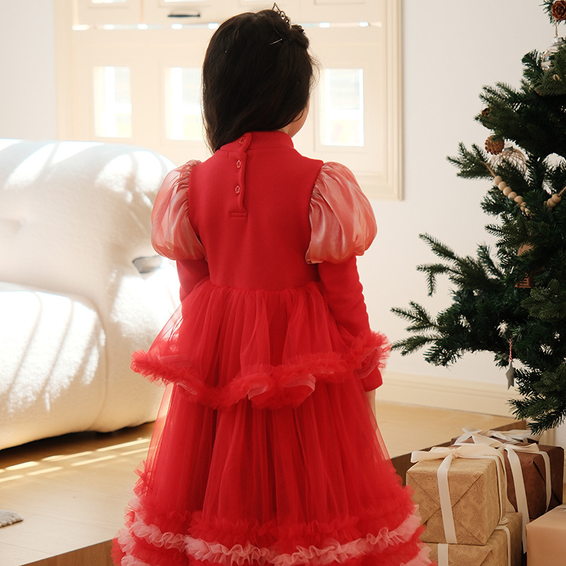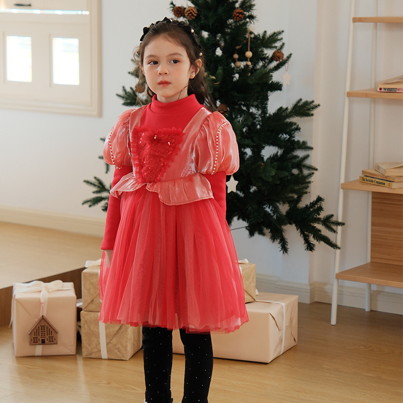 【结业清仓】不退换小女孩洋气圣诞裙女童连衣裙秋冬加绒红色半高