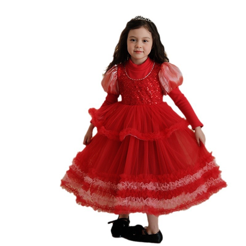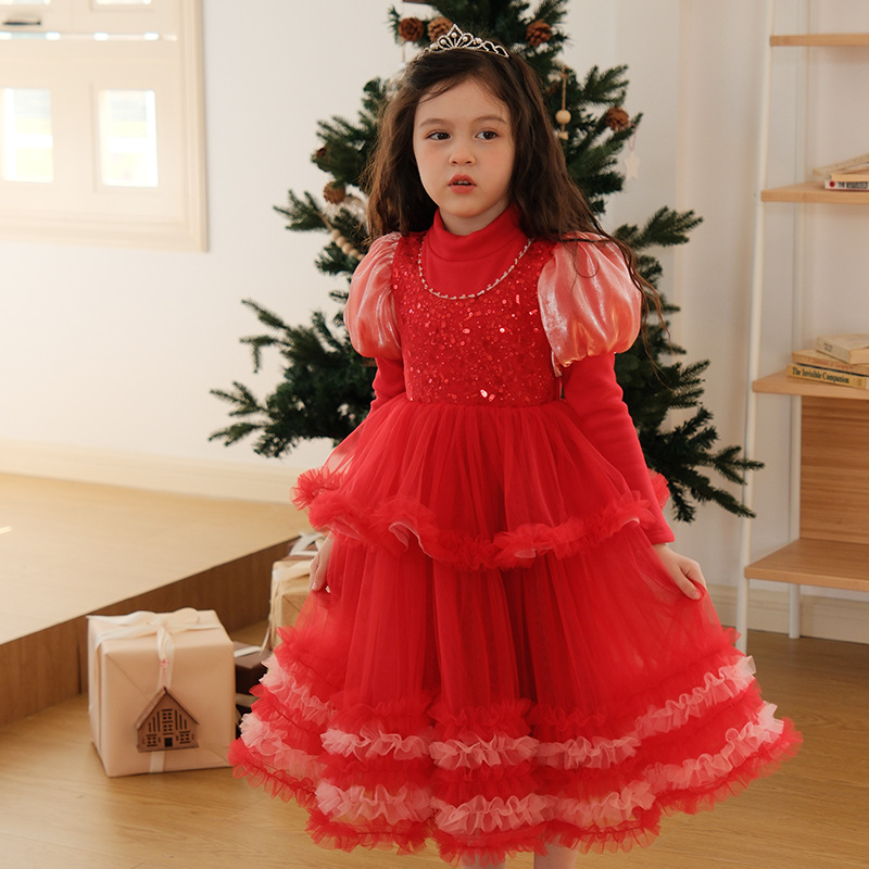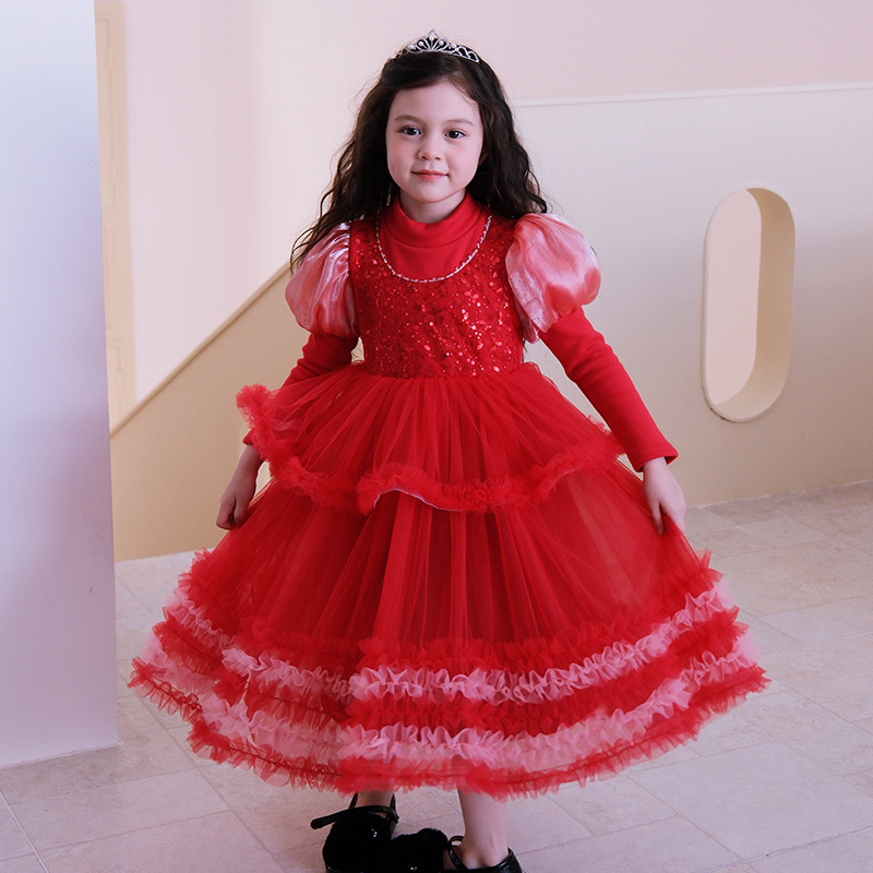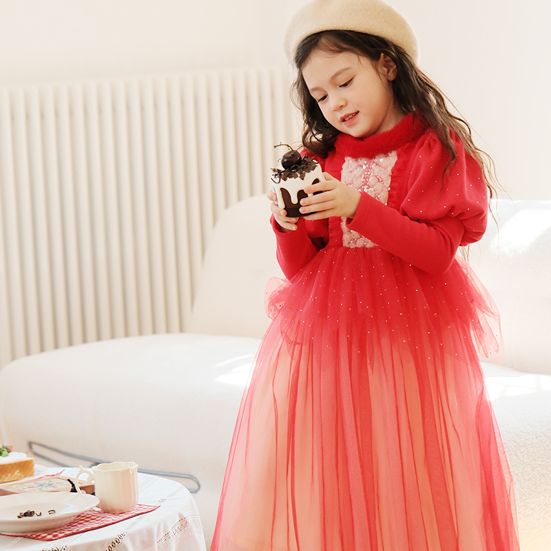 339952大红亮片服礼公主裙; 339950红色加绒礼服公主裙; 339951红色加绒加厚礼服