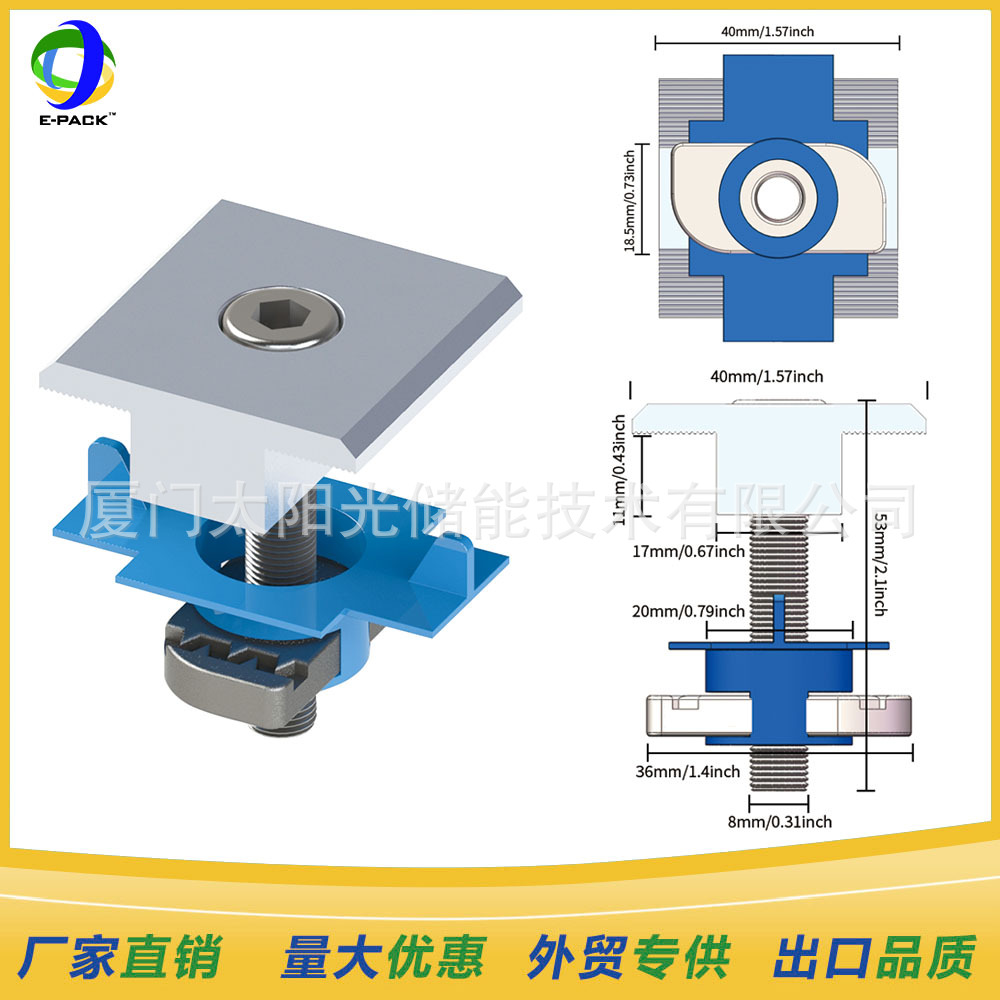 Фотоэлектрическая средневольтная направляющая в форме буквы U с боковым прижимом + пластиковая скользящая гайка с крыльями