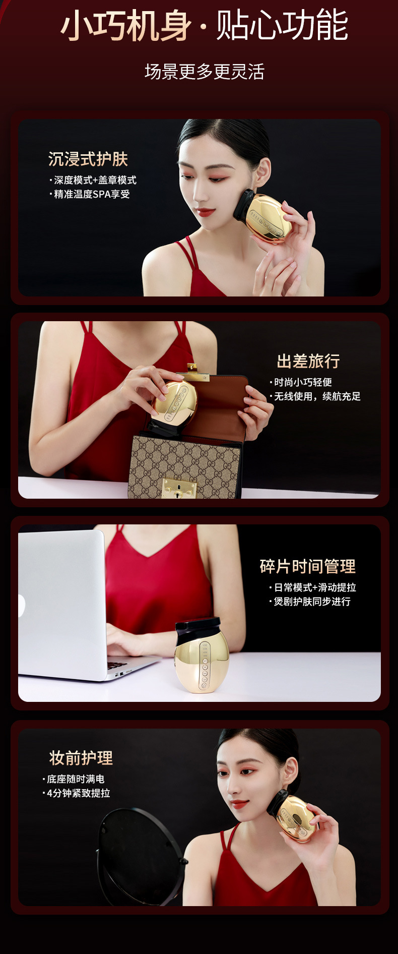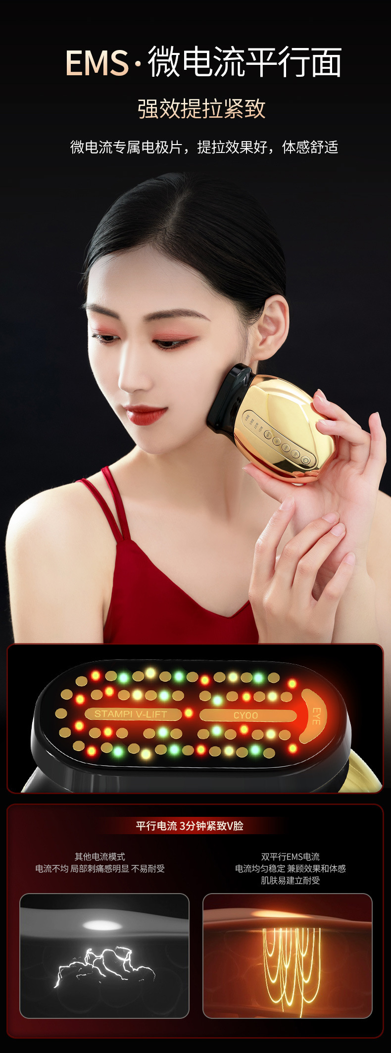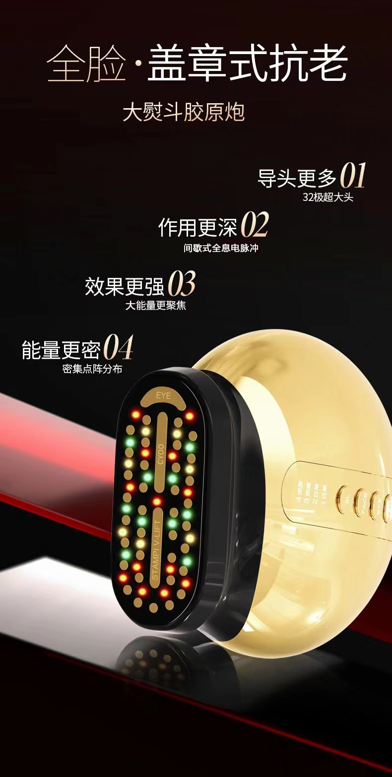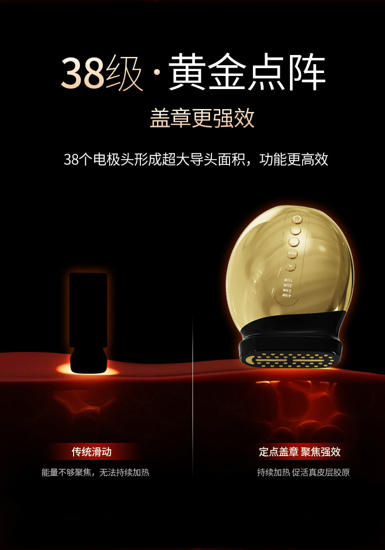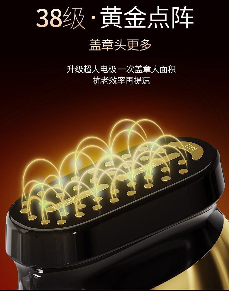 2.38极黄金点阵镀金导头,形成超大面积导头,完全贴合肌肤,肌