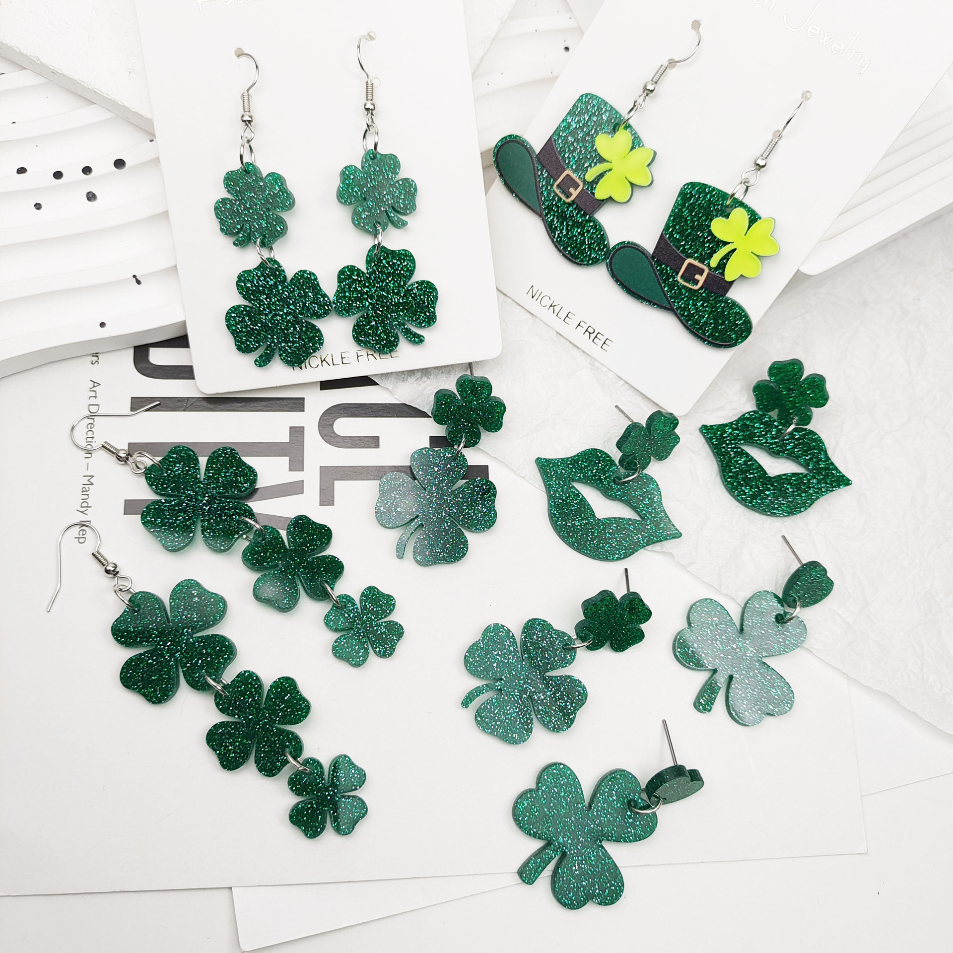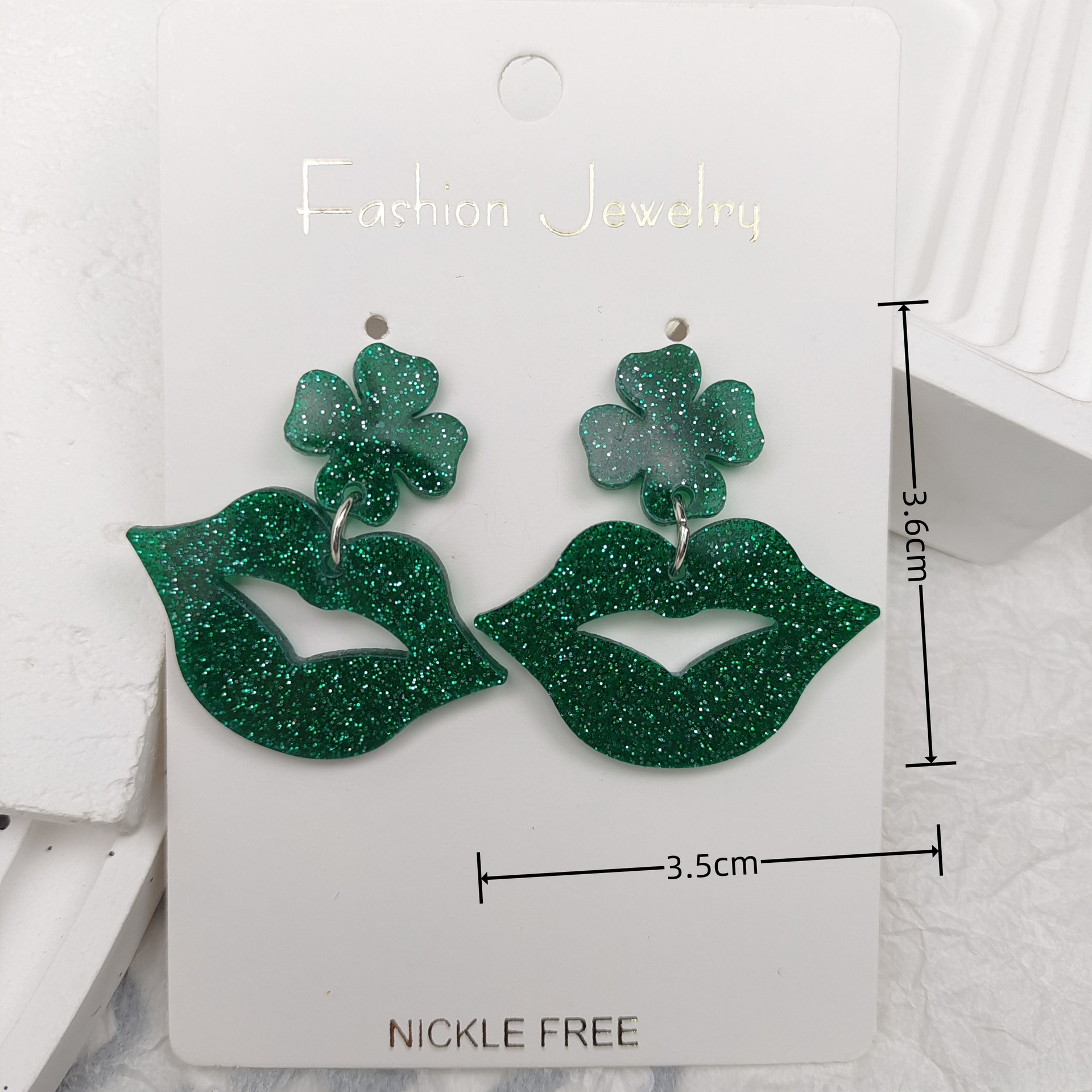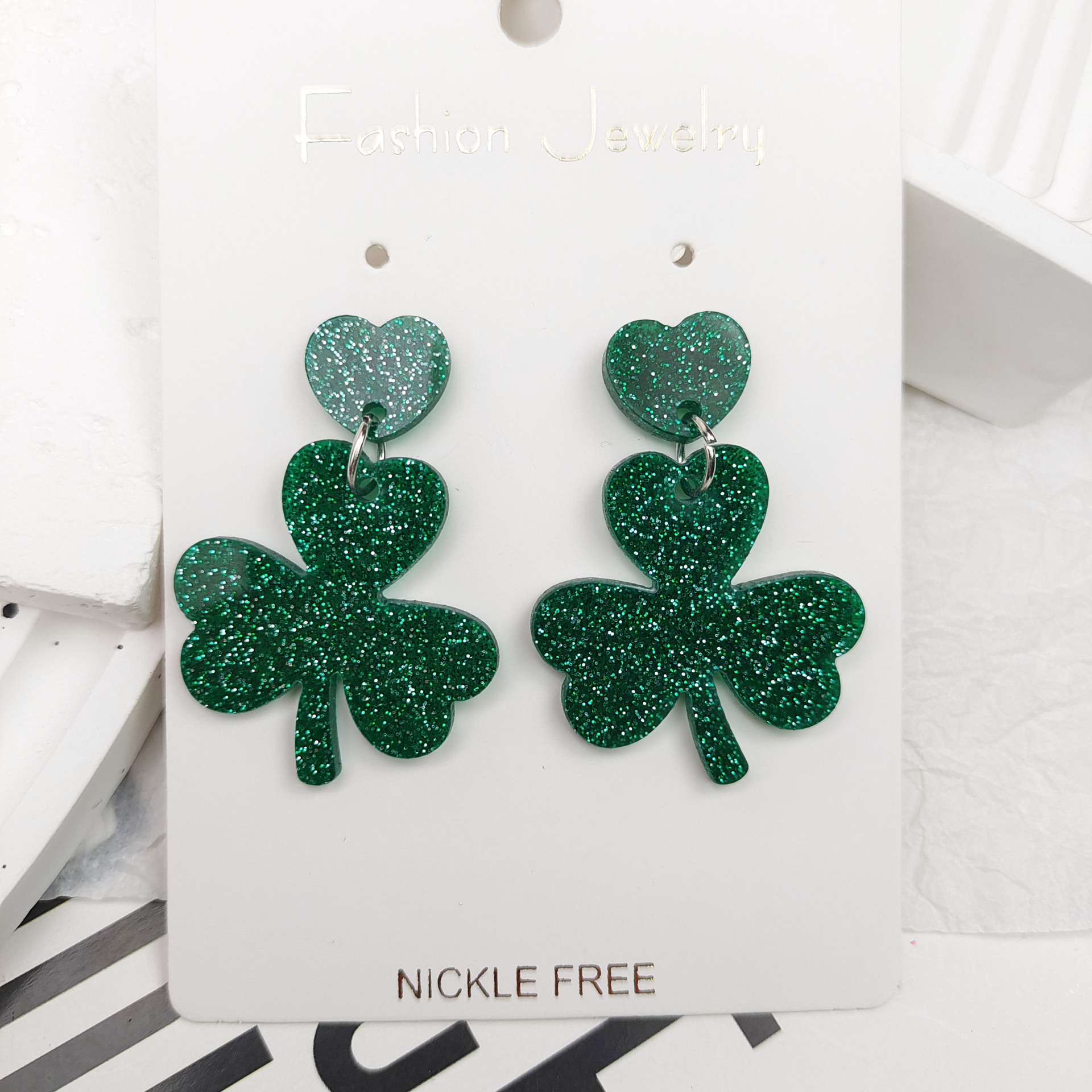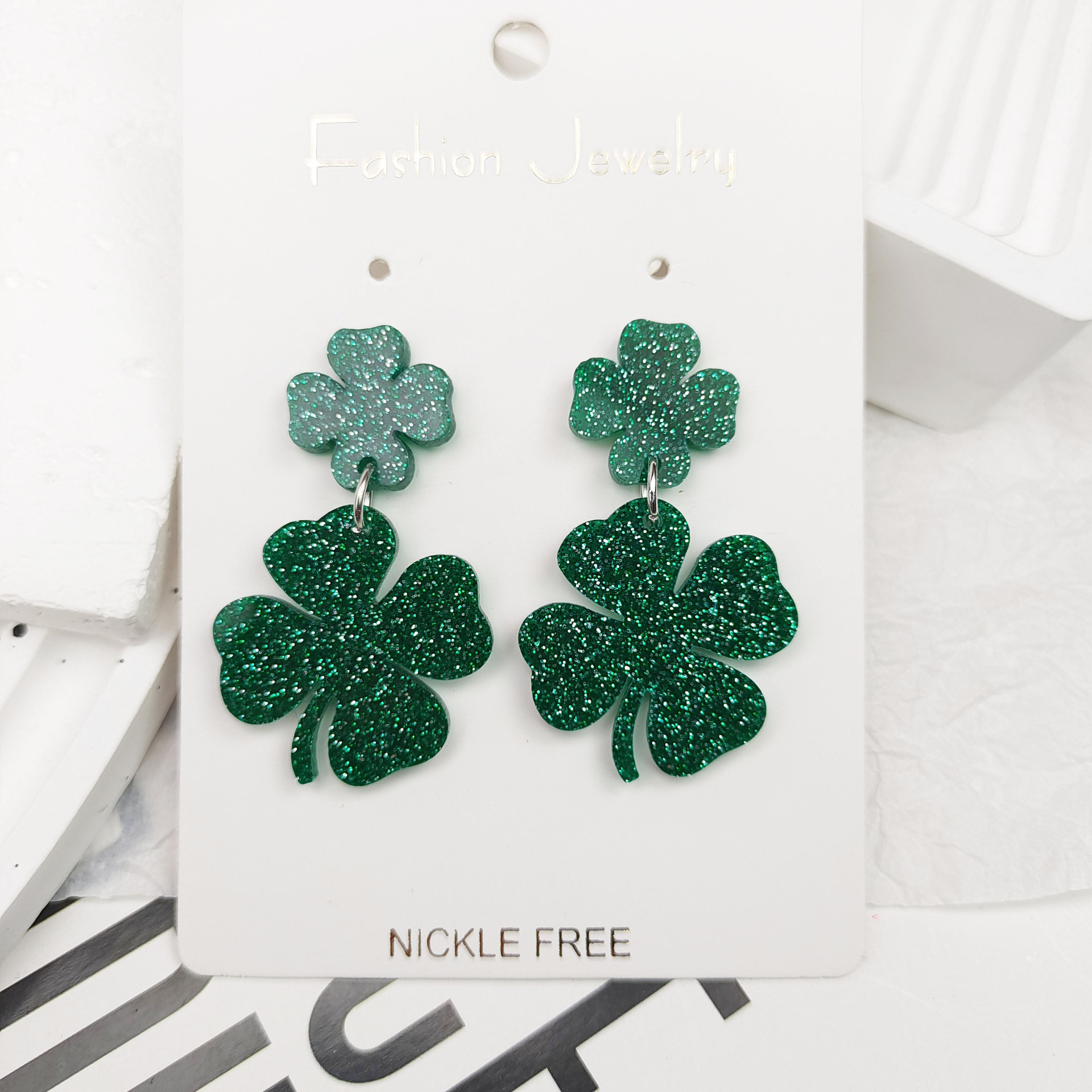 Креативные новые серьги ко Дню Святого Паркера, отличительные Зеленые простые акриловые блестящие серьги на счастливой траве, женские серьги
