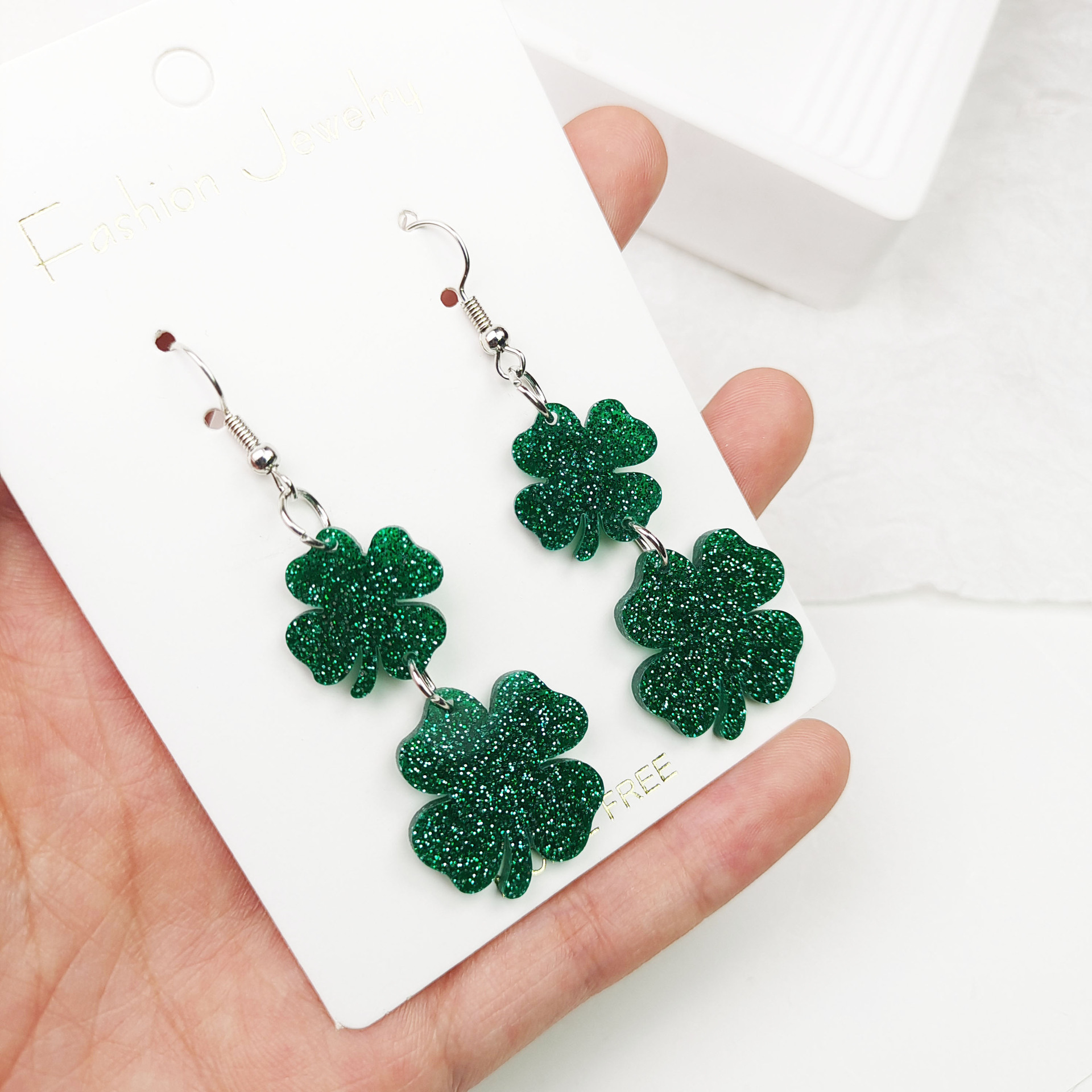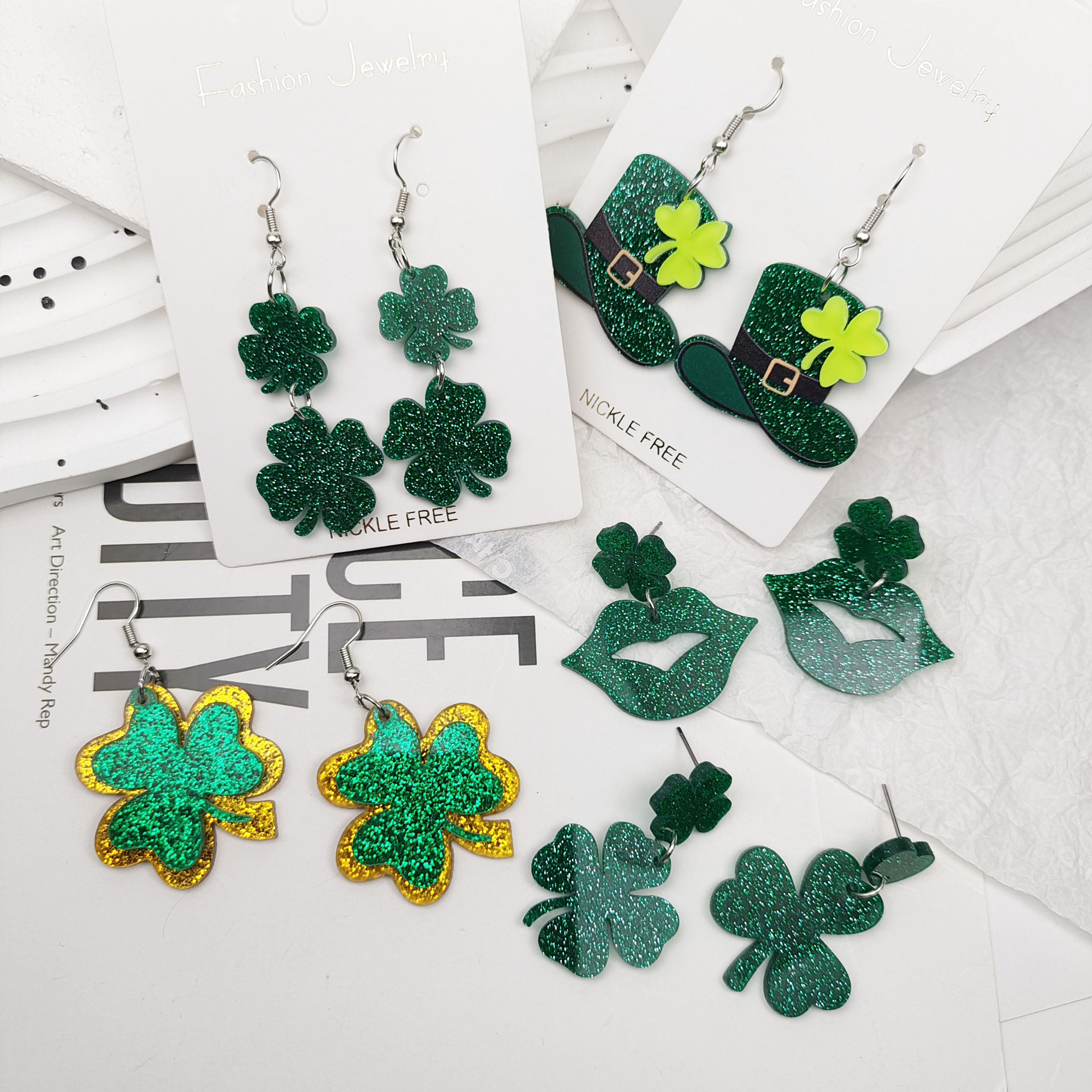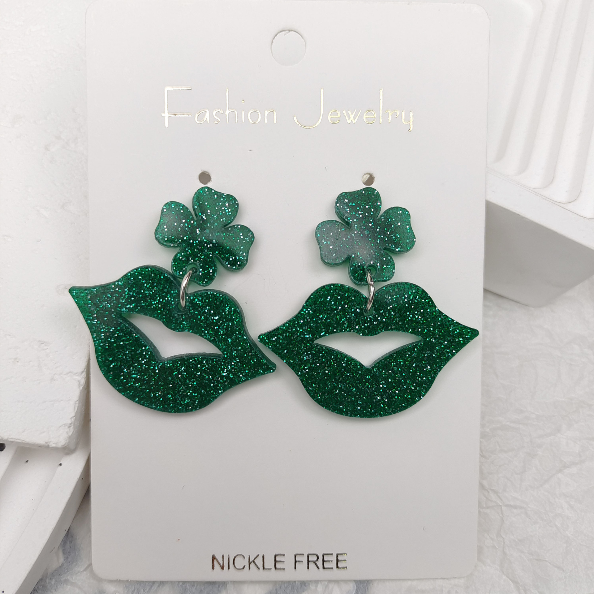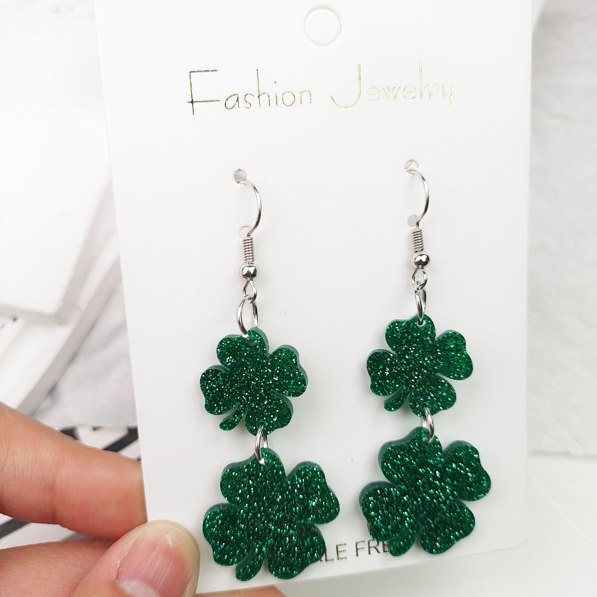 Креативные новые серьги ко Дню Святого Паркера, отличительные Зеленые простые акриловые блестящие серьги на счастливой траве, женские серьги