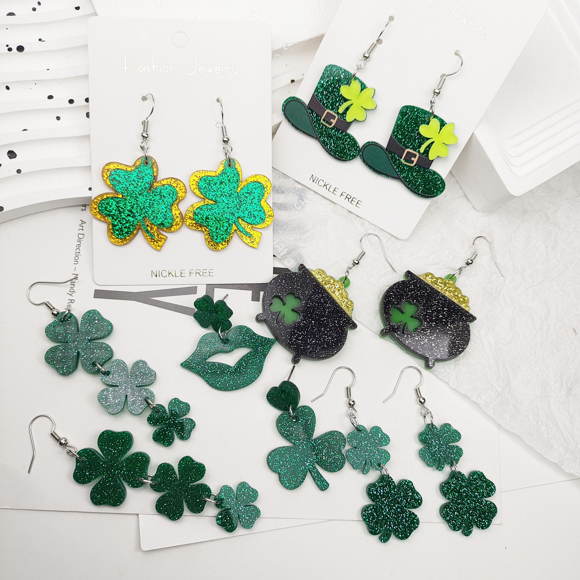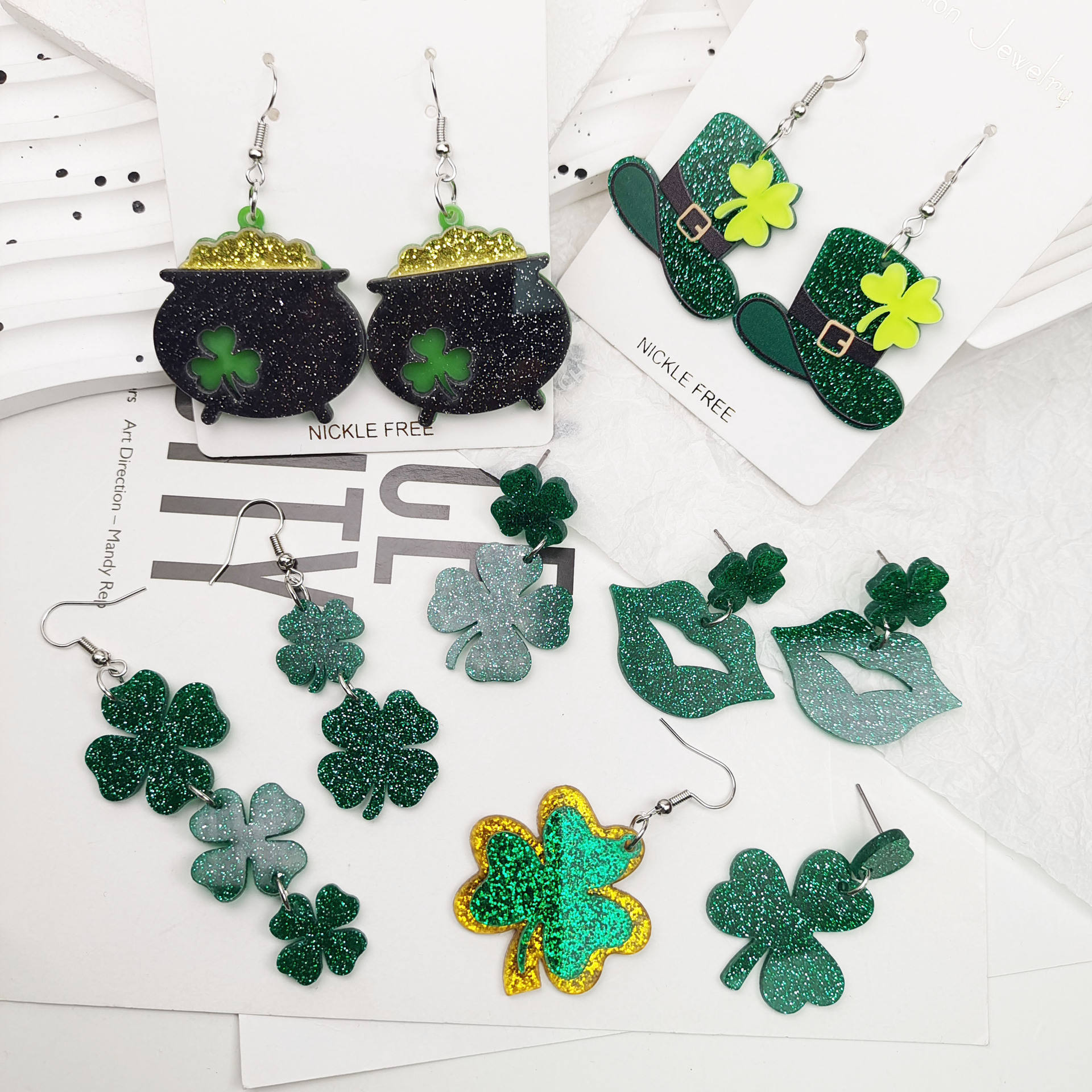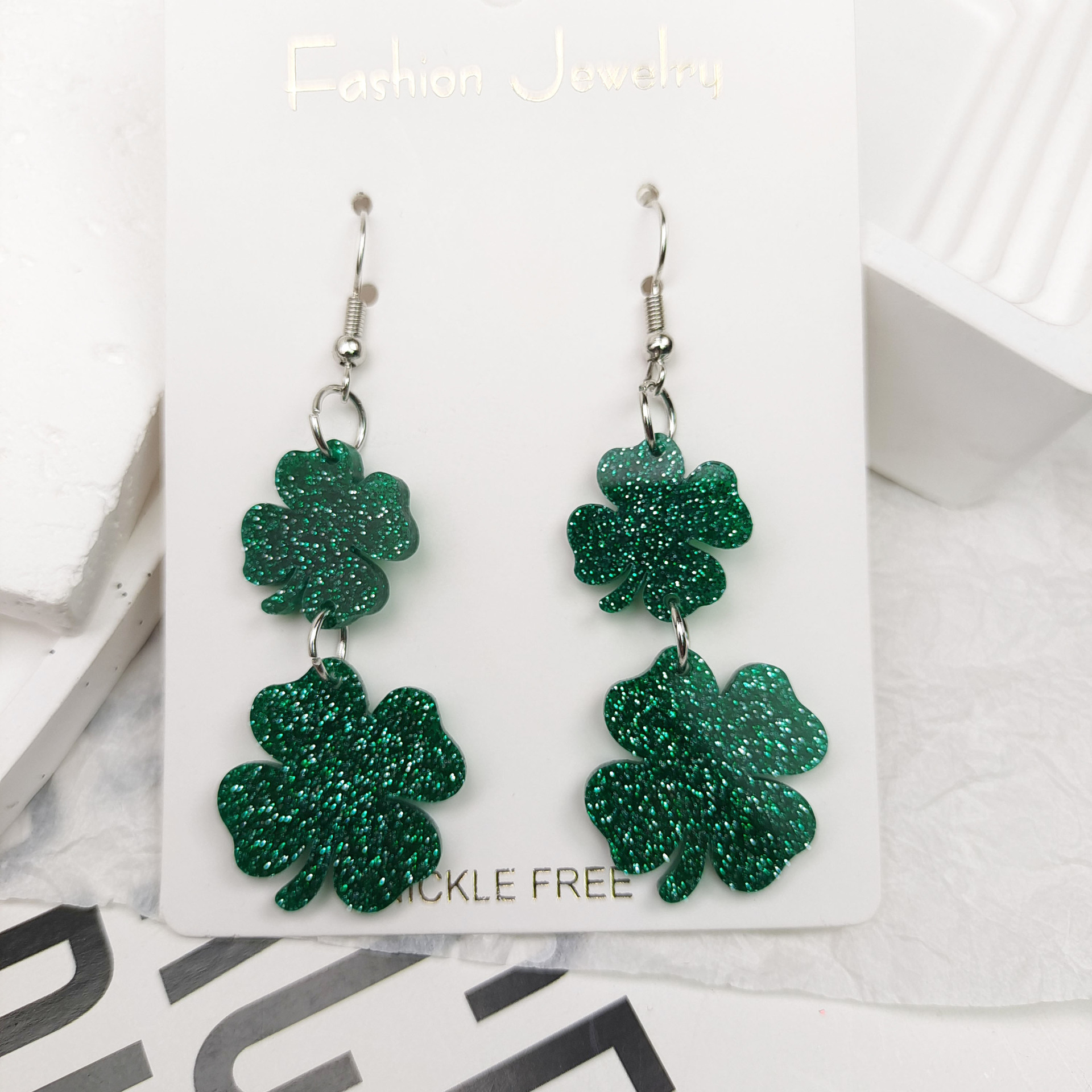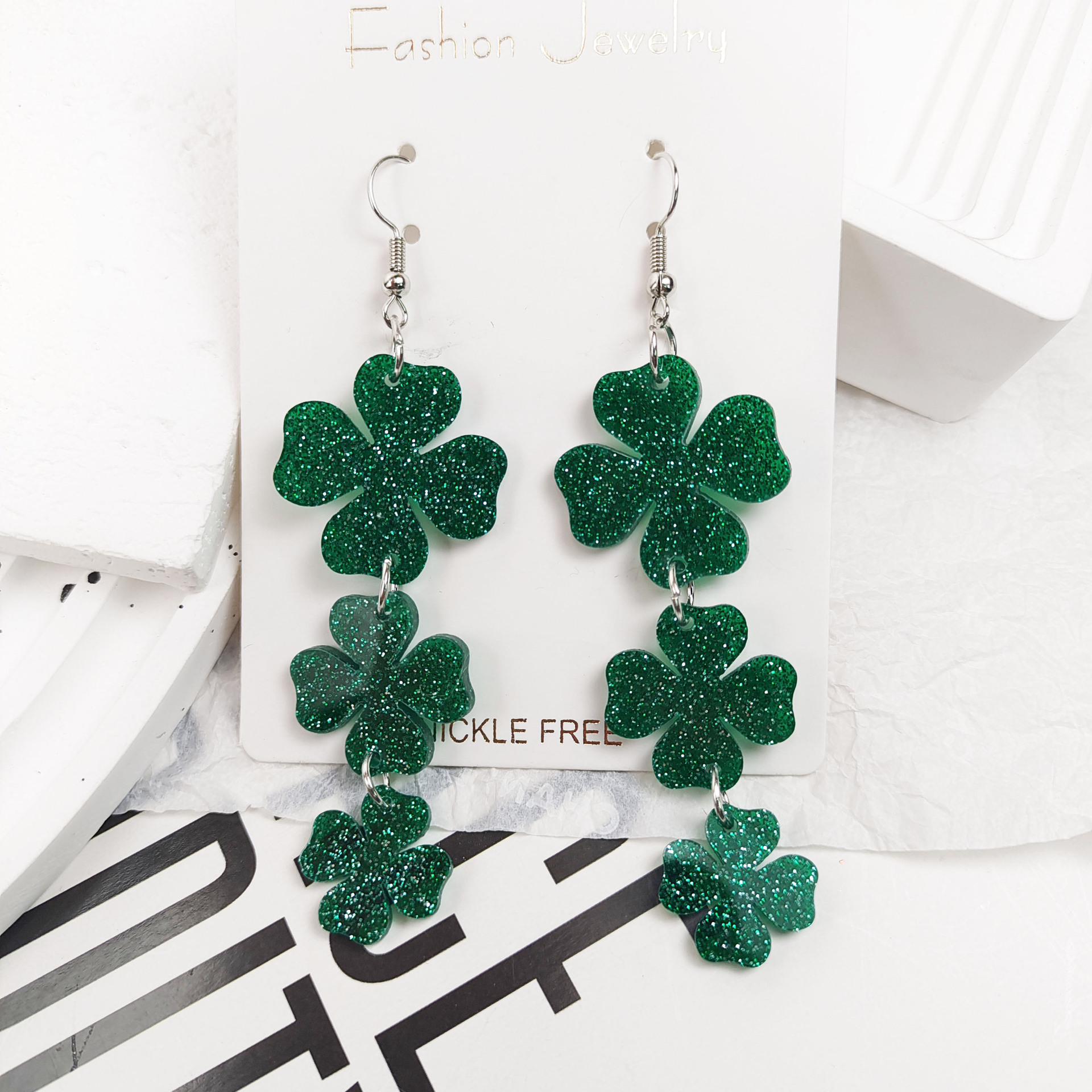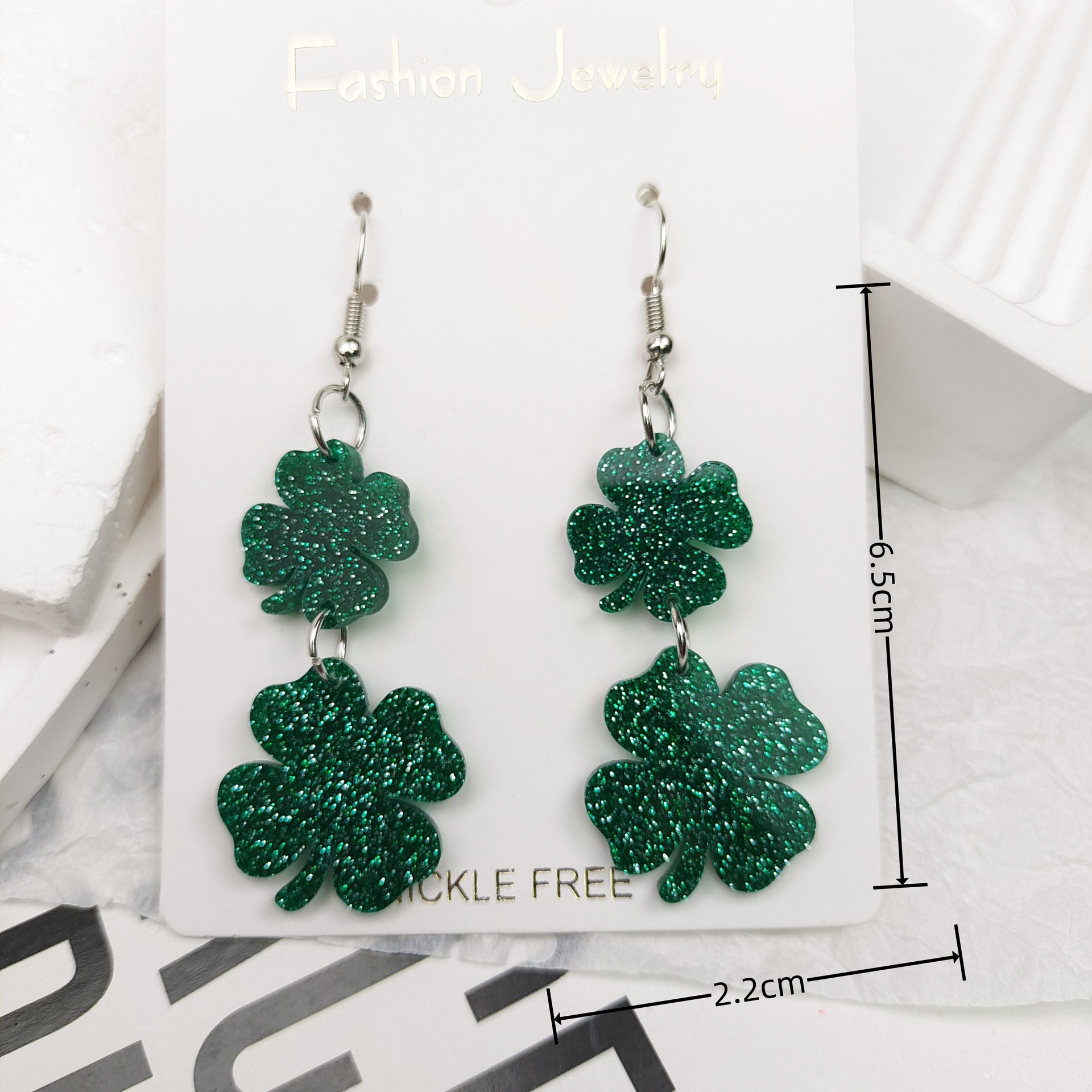 Креативные новые серьги ко Дню Святого Паркера, отличительные Зеленые простые акриловые блестящие серьги на счастливой траве, женские серьги