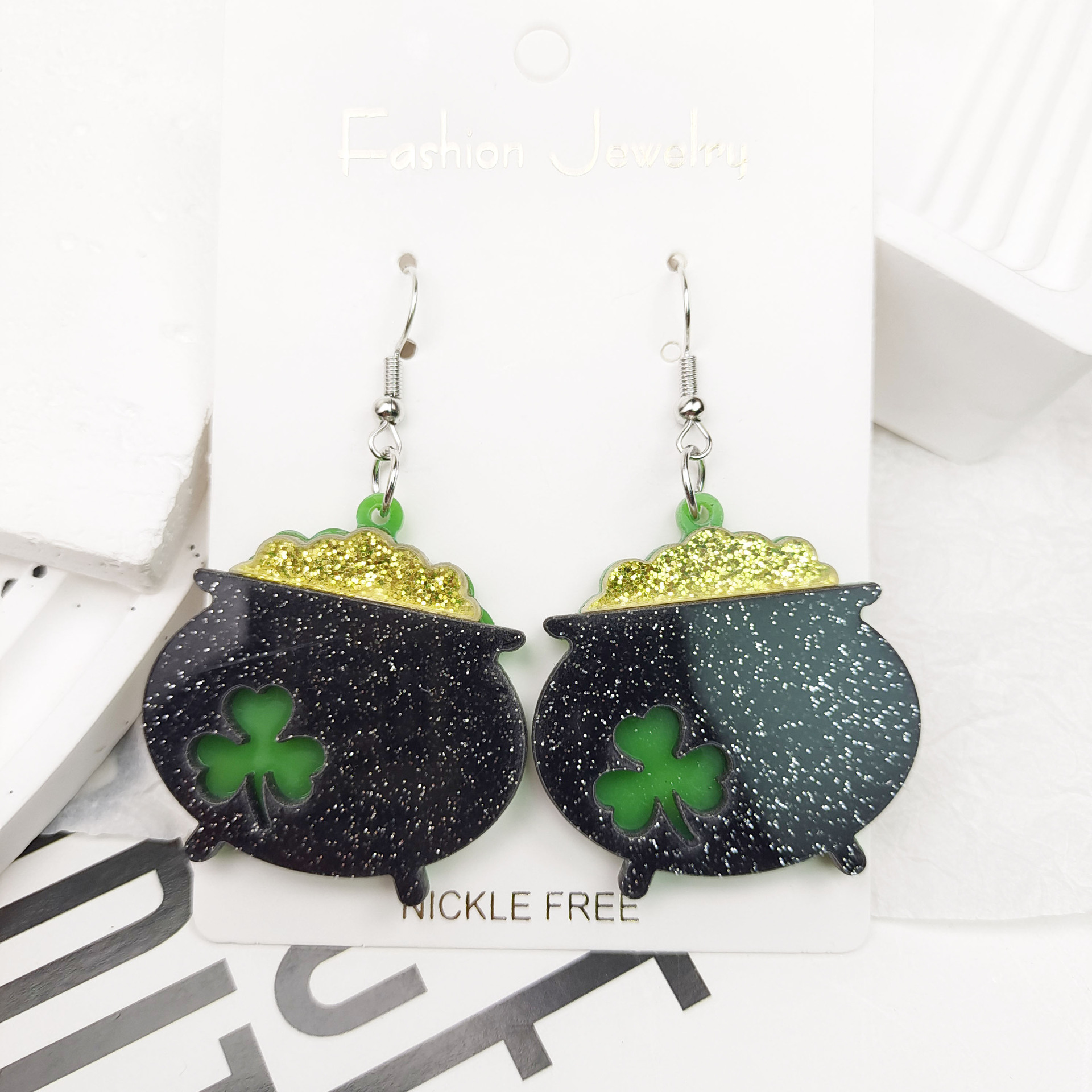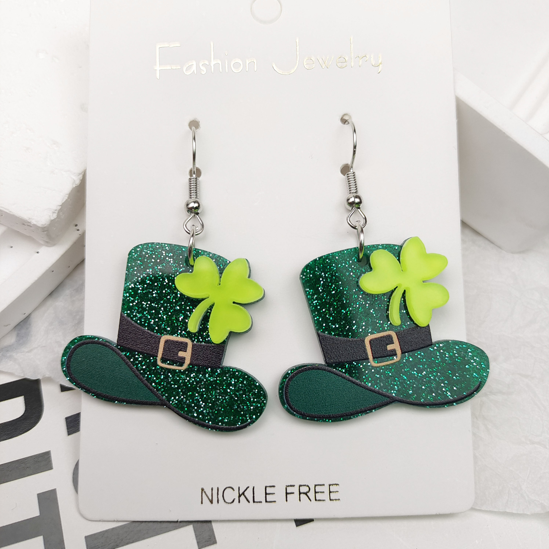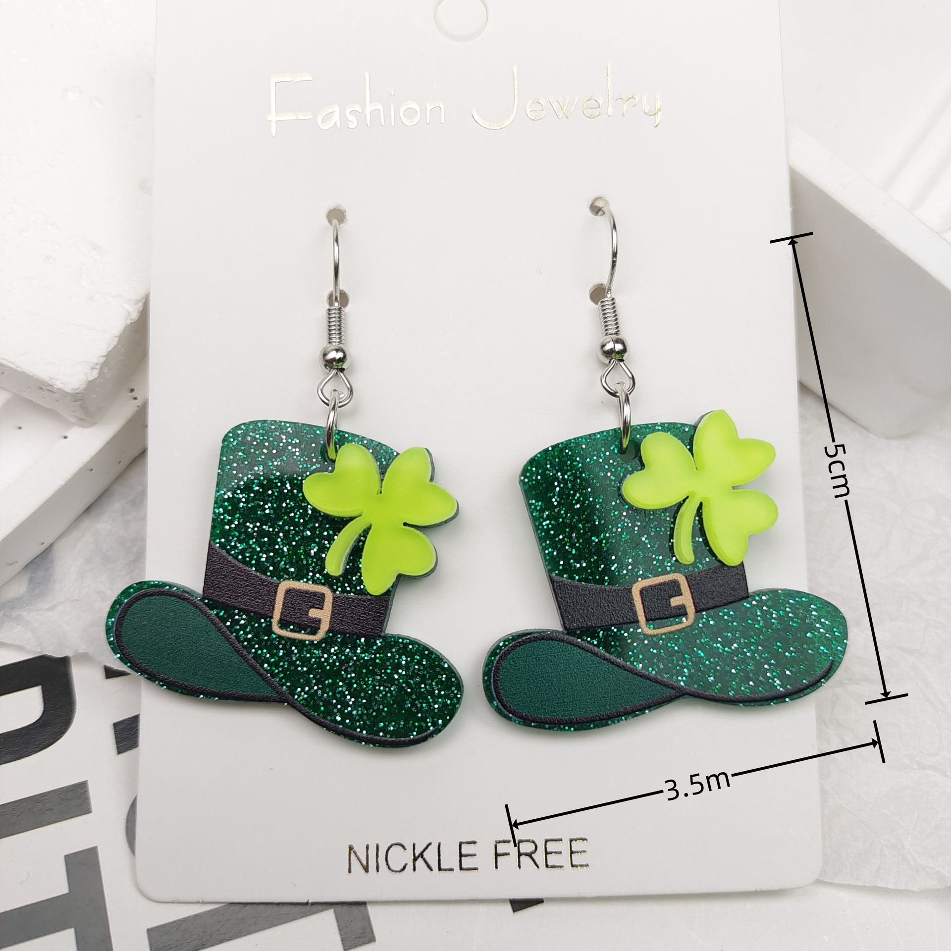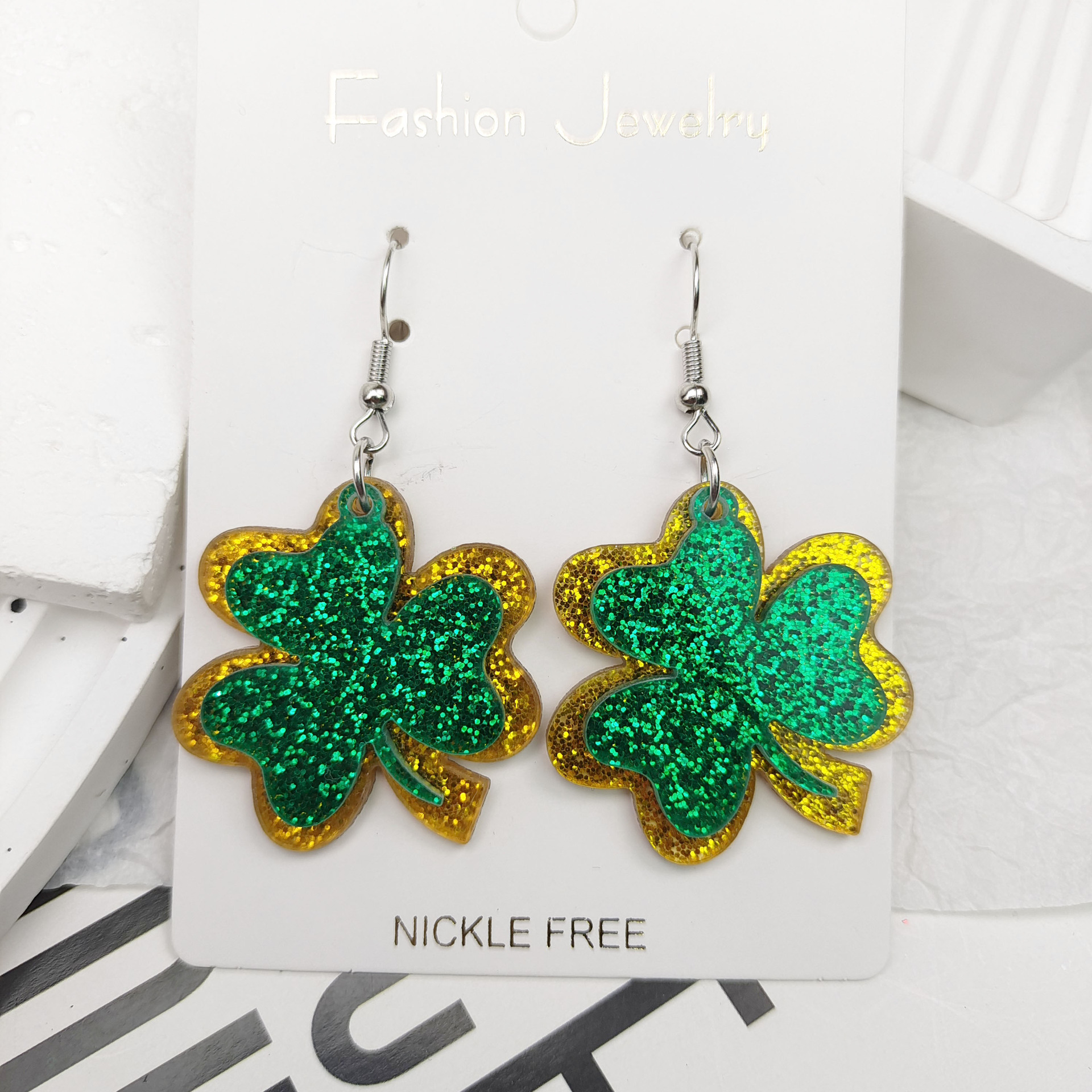 Креативные новые серьги ко Дню Святого Паркера, отличительные Зеленые простые акриловые блестящие серьги на счастливой траве, женские серьги