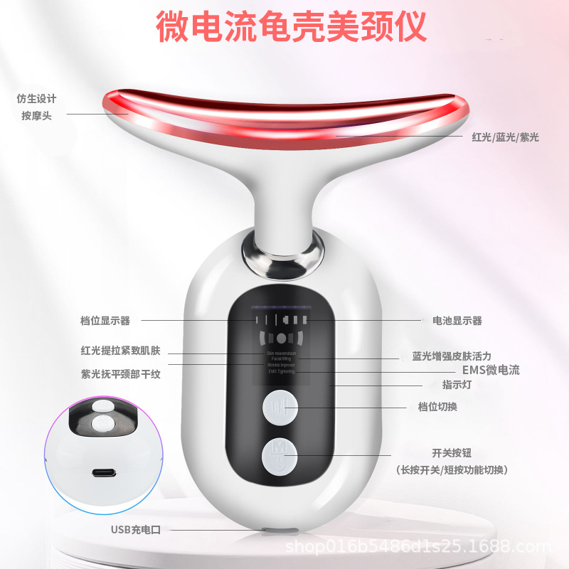 Микротоковый массажер для шеи в форме черепахи, с цветной подсветкой, для лифтинга и подтяжки, удаления морщин на шее, вибрационный массажер, устройство для ухода за шеей.