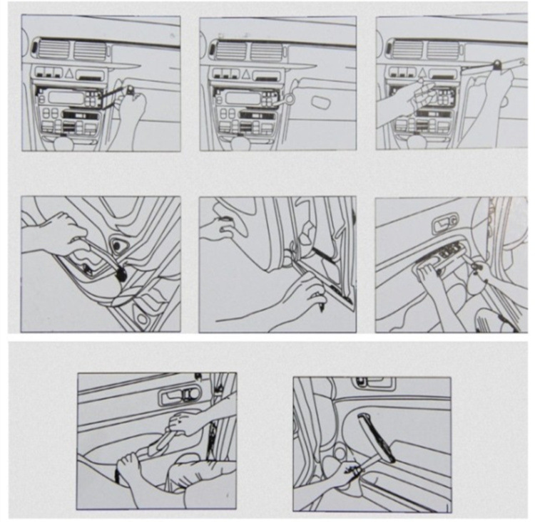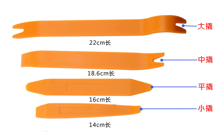 6 种类非常全,包括拆卸门板和内饰用的翘板, 各种音响钥匙等等 ,光滑且有一定弹性 ,大限度的保护车上的零件完整的拆卸