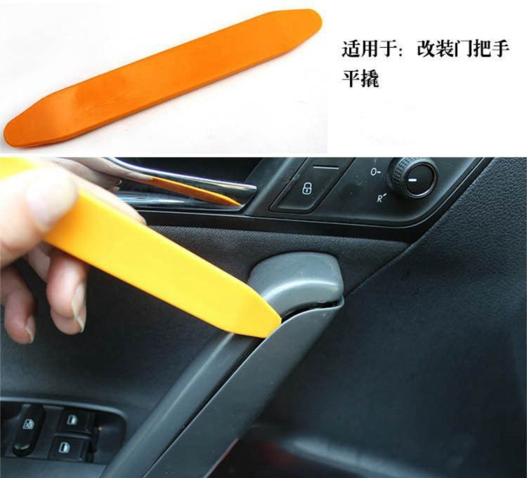 4 相比较以前销售的含金属翘板的工具 施工受力蛮硬 容易翘坏门板扣卡 而且由于都使用铁或不锈钢材料 工具表面坚硬 尤其是会损伤车漆部分 在不同部位使用过后都会留下翘迹.