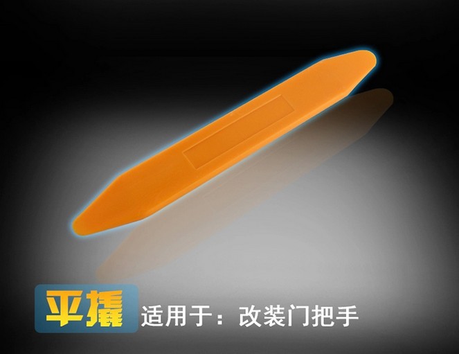 5 本款是改良后的升级款工具, 在保证工具使用寿命和强度的同时, 彻底放弃金属材料 . 广州车美.全部采用质量非常好的合成材料 ,有一定的弹性 -韧性好- 对门板施力时可以更好的保护卡扣,也不会象金属翘板那样在车上留下翘痕.