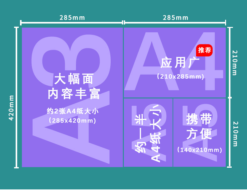 A4(210x285 мм) складной; A5(210x140 мм) складной; Нестандартный Размер