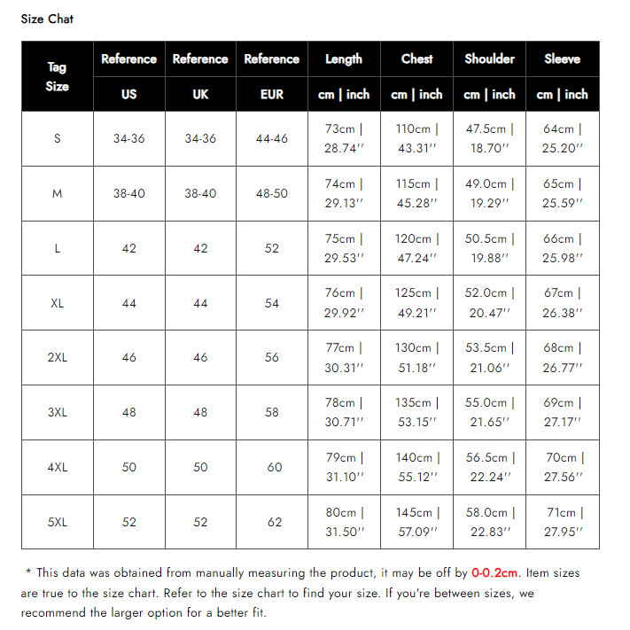 S; M; L; XL; 2XL; 3XL; 4XL; 5XL