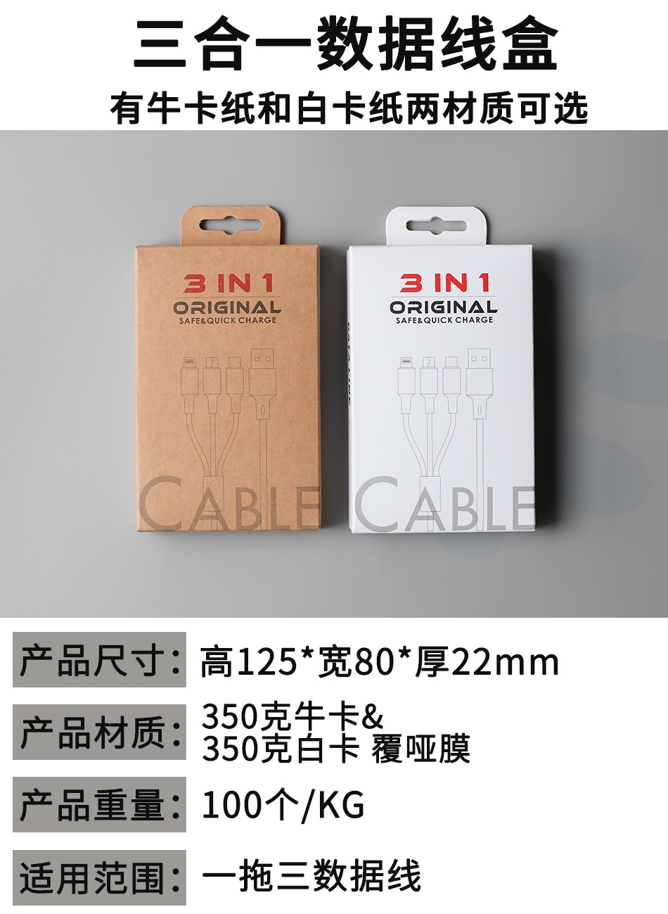 Универсальный кабель для передачи данных 3-в-1, упаковка для кабелей для мобильных телефонов, коробка для зарядных кабелей на три устройства, универсальная упаковка для кабелей для передачи данных