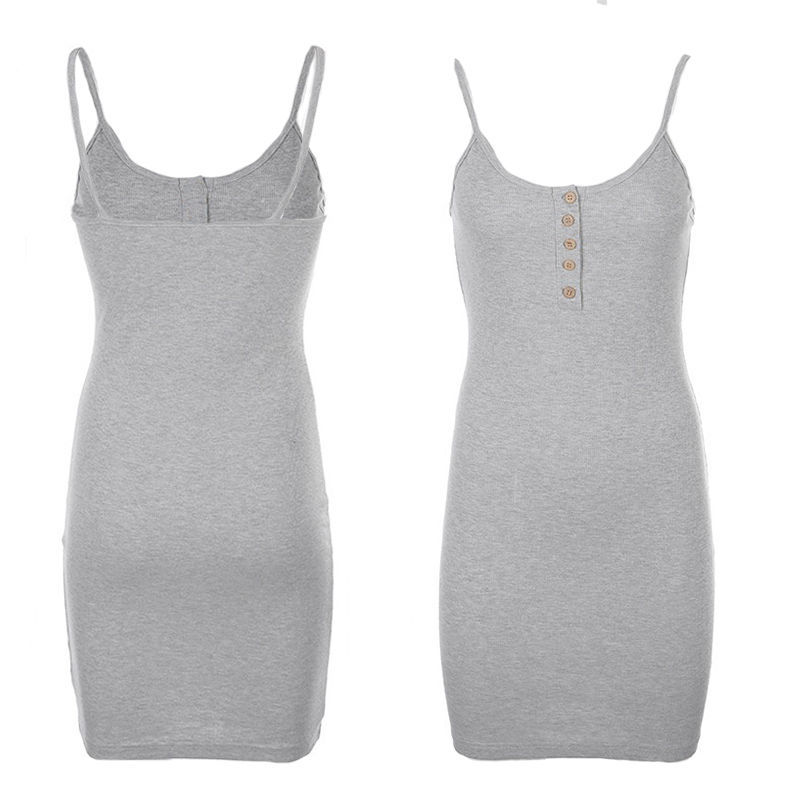 Летняя Новая модная сумка на пуговицах с низким вырезом и резьбой на плечах, эластичный тонкий слинг, однотонное базовое платье