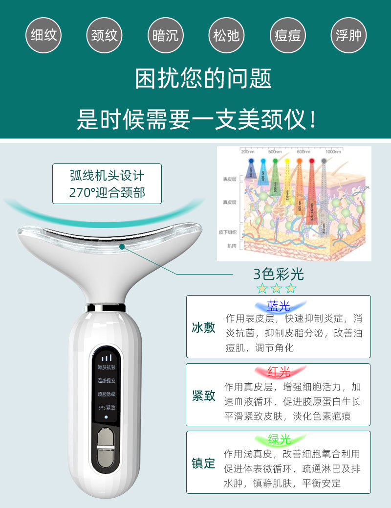 Портативный прибор для омоложения кожи лица и шеи, вибромассажер для шеи, электронный косметический прибор для домашнего использования, трансграничная продажа