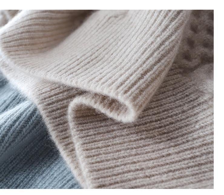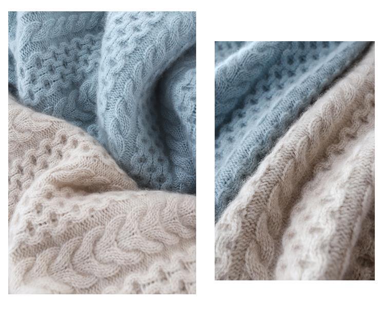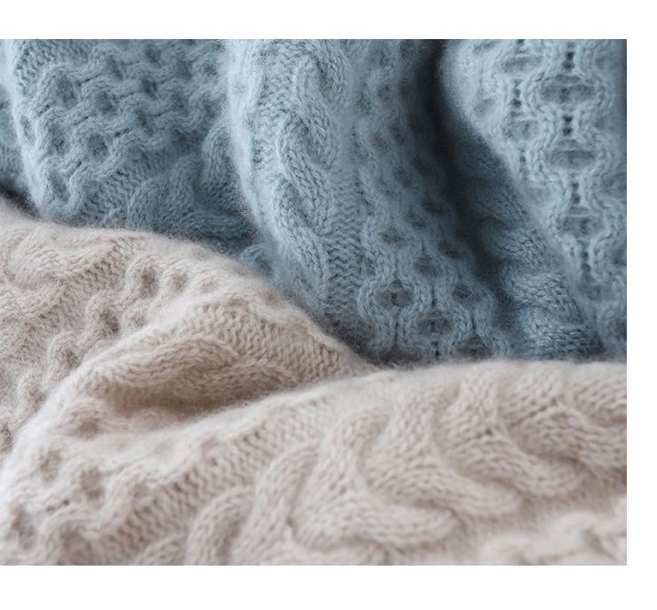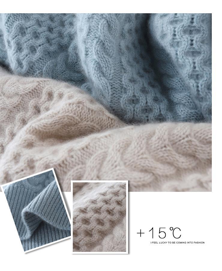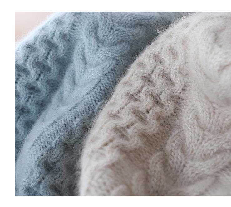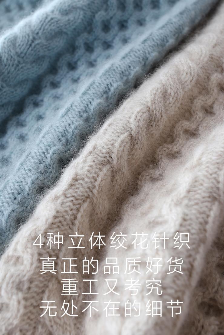 非常雾面色彩表现手法,配合大身的的4种绞花编织,粗细、疏密分布均匀,耐看又别致