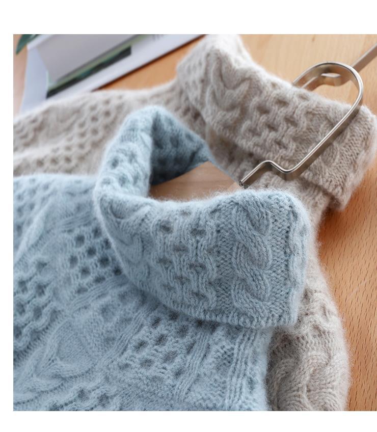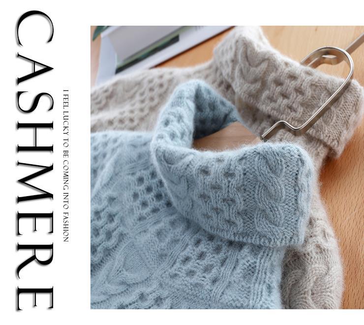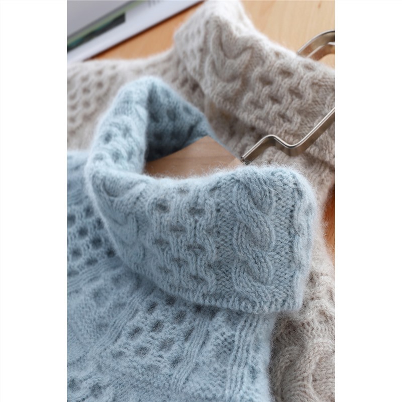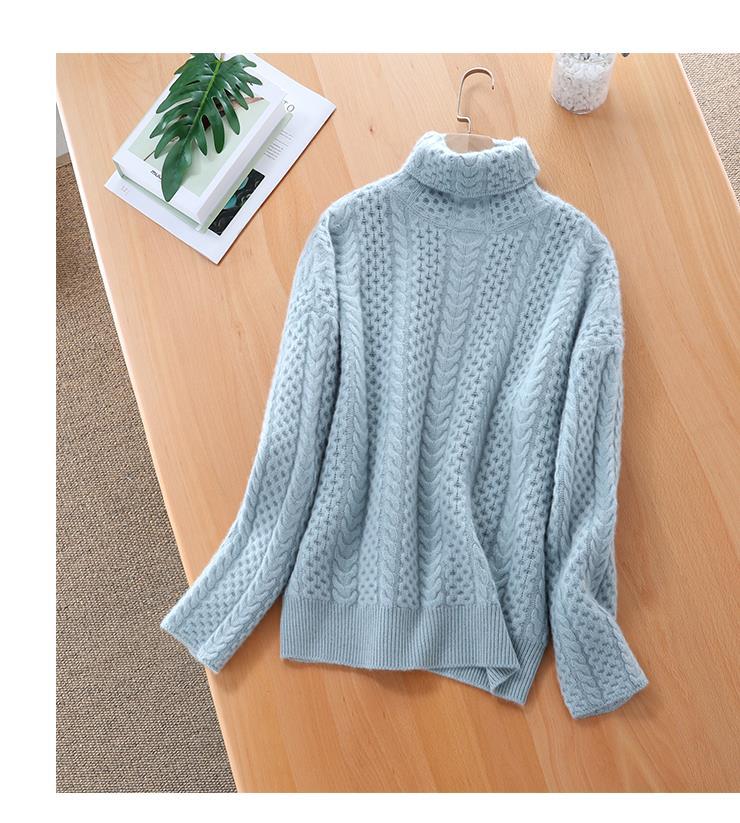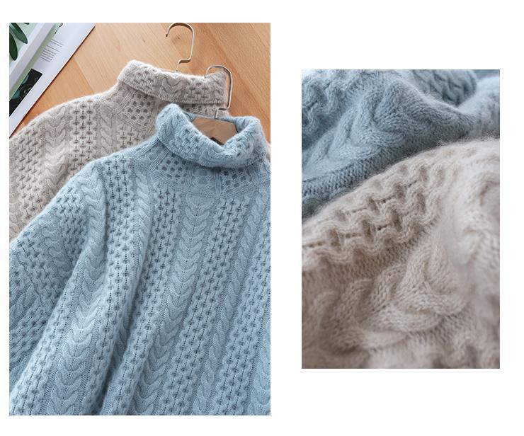 Женский свитер с высоким воротом, утолщенный, свободного кроя, пуловер крупной вязки, свитер в стиле кэбель-вязка, базовая вязаная кофта свободного кроя