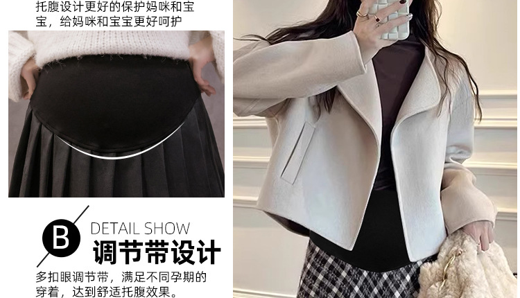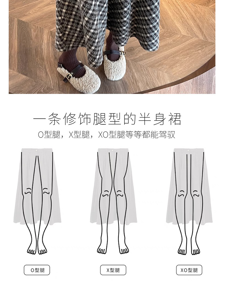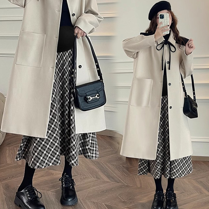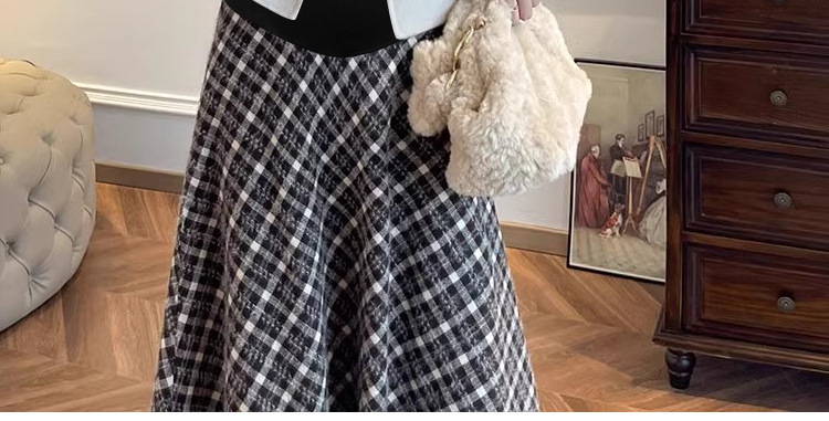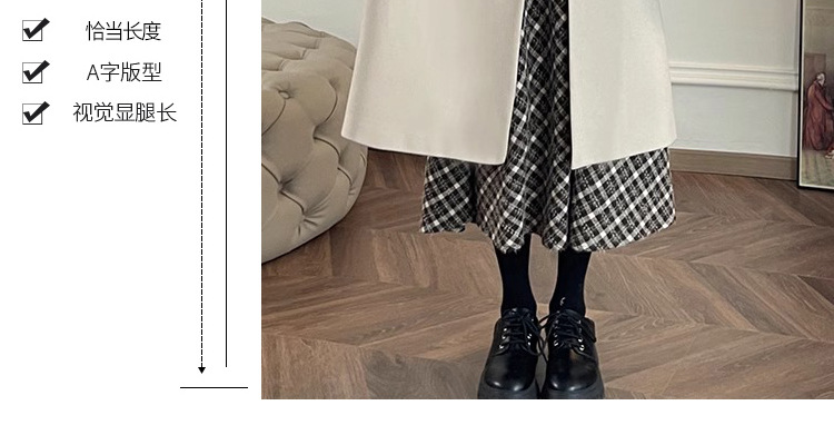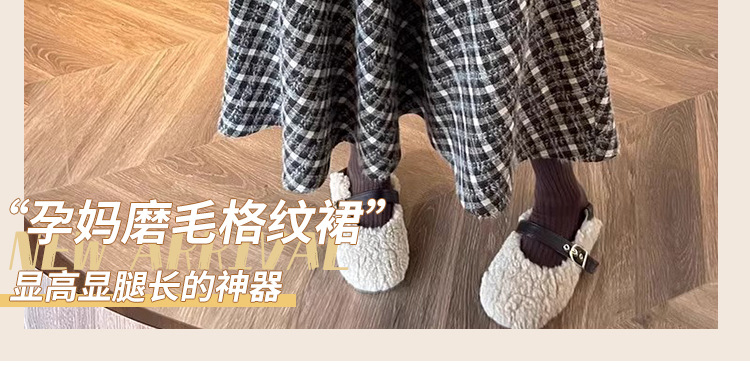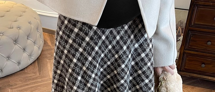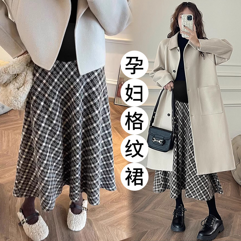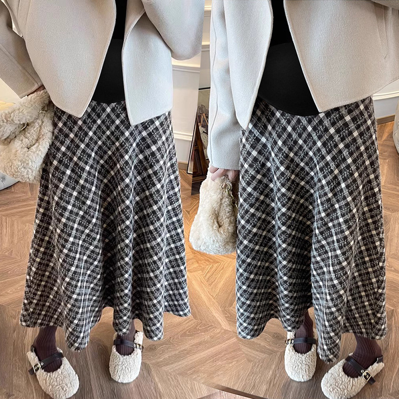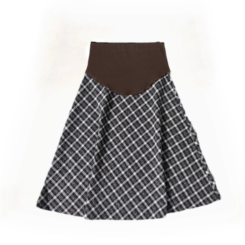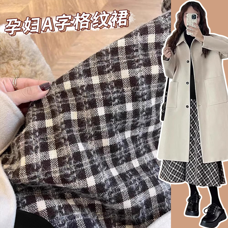 Зимняя юбка А-силуэта в клетку для беременных 2024 года с карманами с обеих сторон + юбка средней длины с начесом и поддержкой для живота