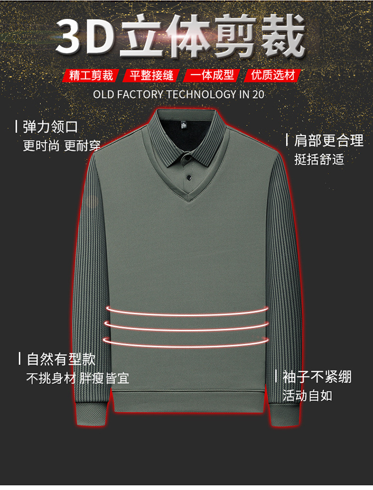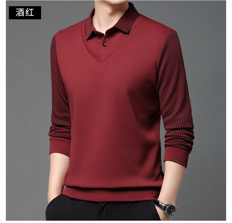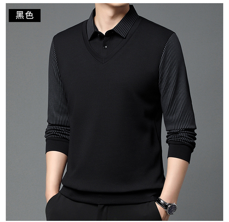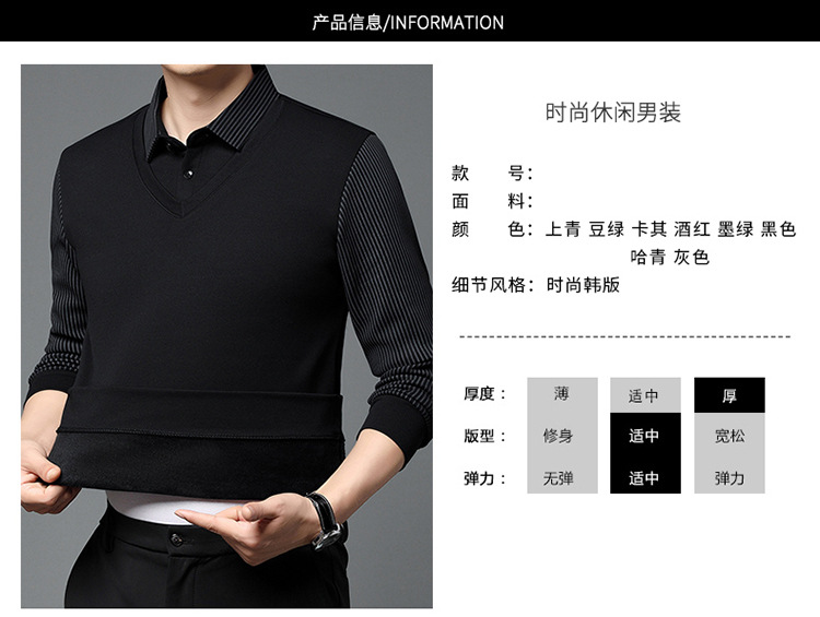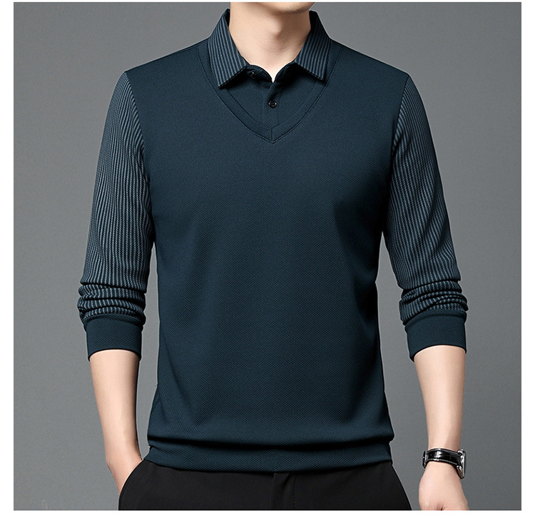 Новая Зимняя мужская футболка в полоску с лацканами, средняя Зеленая Мужская модная повседневная искусственная футболка из двух частей, модный топ оптом
