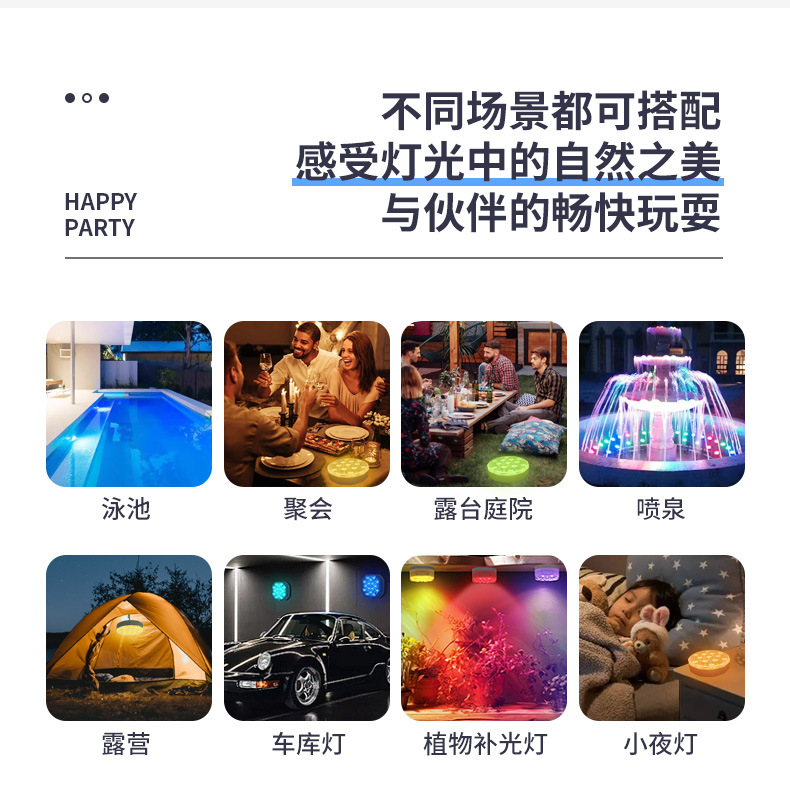 电商新款充电水底灯水下灯led景观灯泳池灯吸磁点控遥控潜水灯