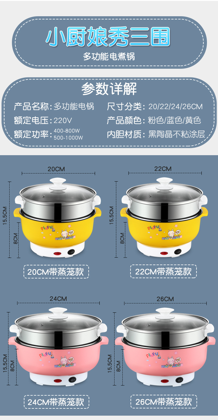 Мультяшная двойная ручка многофункциональная антипригарная умная студенческая общежитие бытовой электрический горшок мини-пароварка многопользовательская электрическая кастрюля (