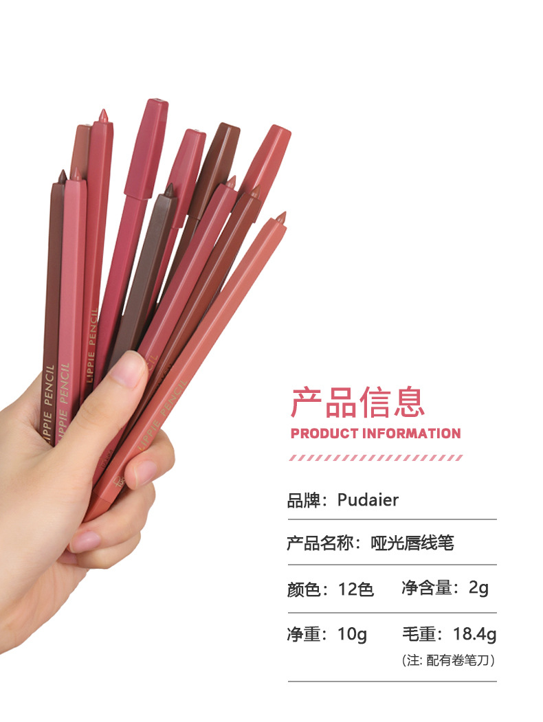Горячая распродажа Pudaier: водостойкий матовый карандаш для губ с эффектом нелипкости, подходит для контура губ, популярный на Amazon.