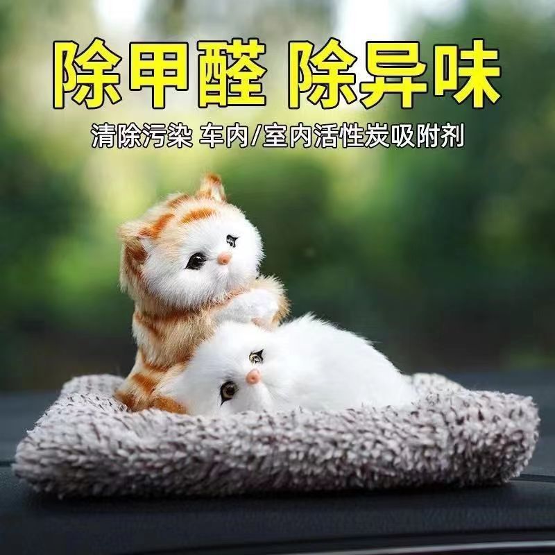 Автомобиль Мультфильм Кукла Пара Кошка Автомобильные аксессуары Бамбуковый Уголь Сумка Украшения Милая Моделирование Кошка Ручная Модель Кукла