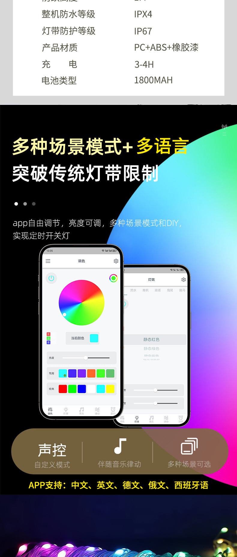 Юань Е зеленый (обычная версия + теплая световая полоса 10 м); Пустынно-желтый (обычная версия + теплая световая полоса 10 м; Поле Зеленое (6 м цветной свет RGB + управление через приложение); Пустынный желтый (цветной свет RGB 6 м + управление через приложение)