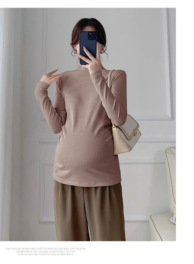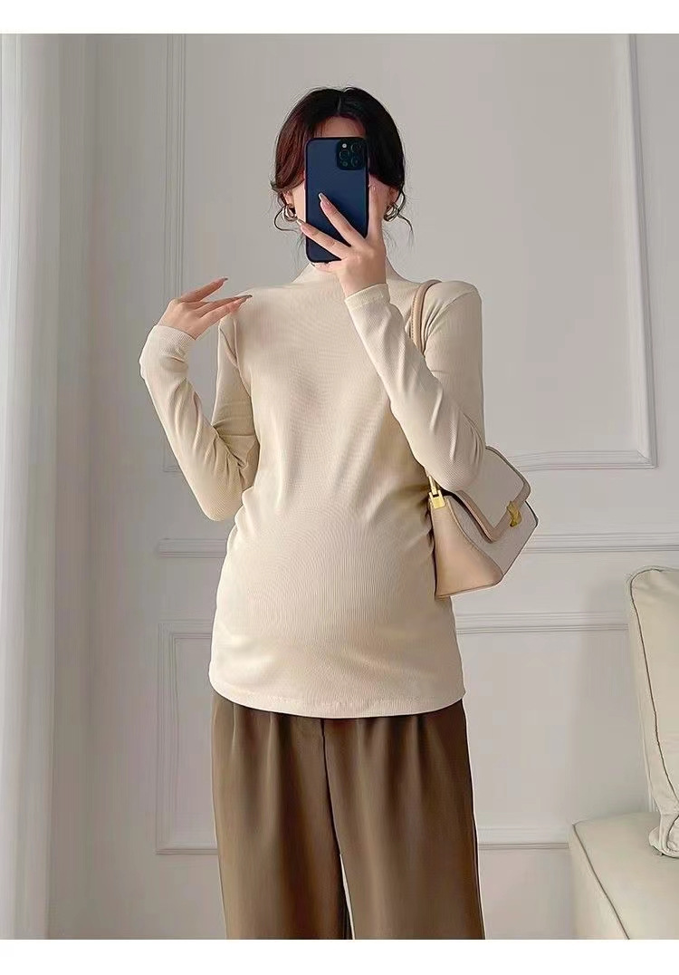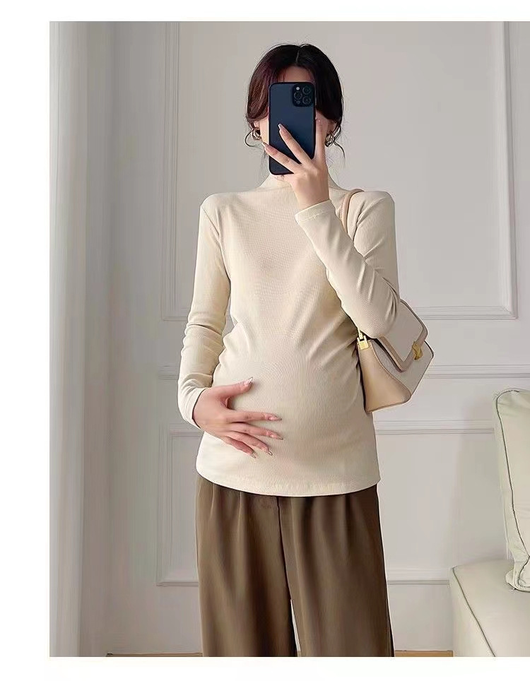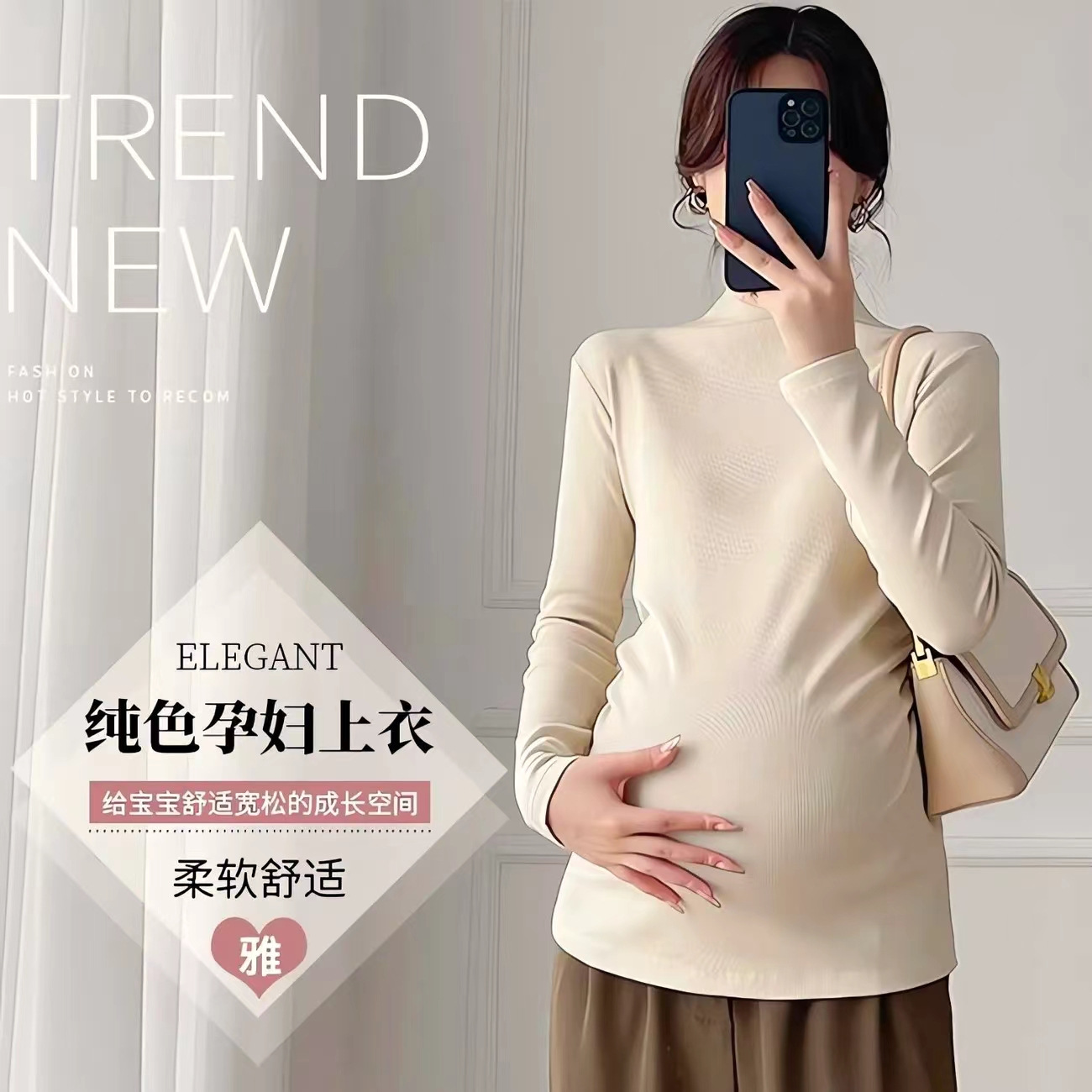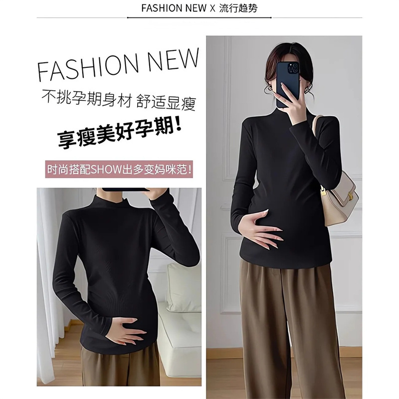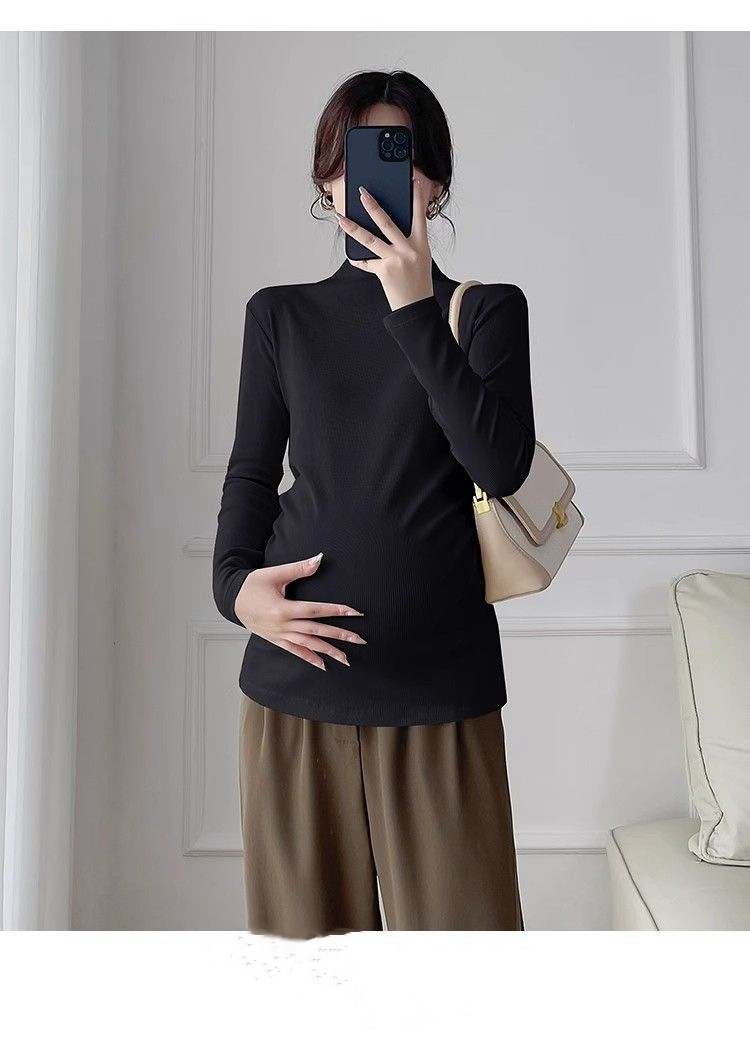 Одежда для беременных, осенняя одежда, бархатный свитер для беременных, Зимний новый теплый Однотонный свитер с высоким воротом, нижняя рубашка, топ, мода