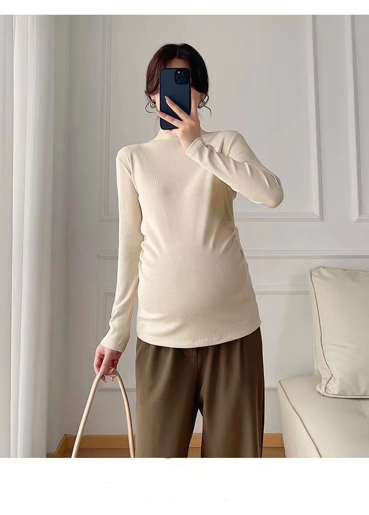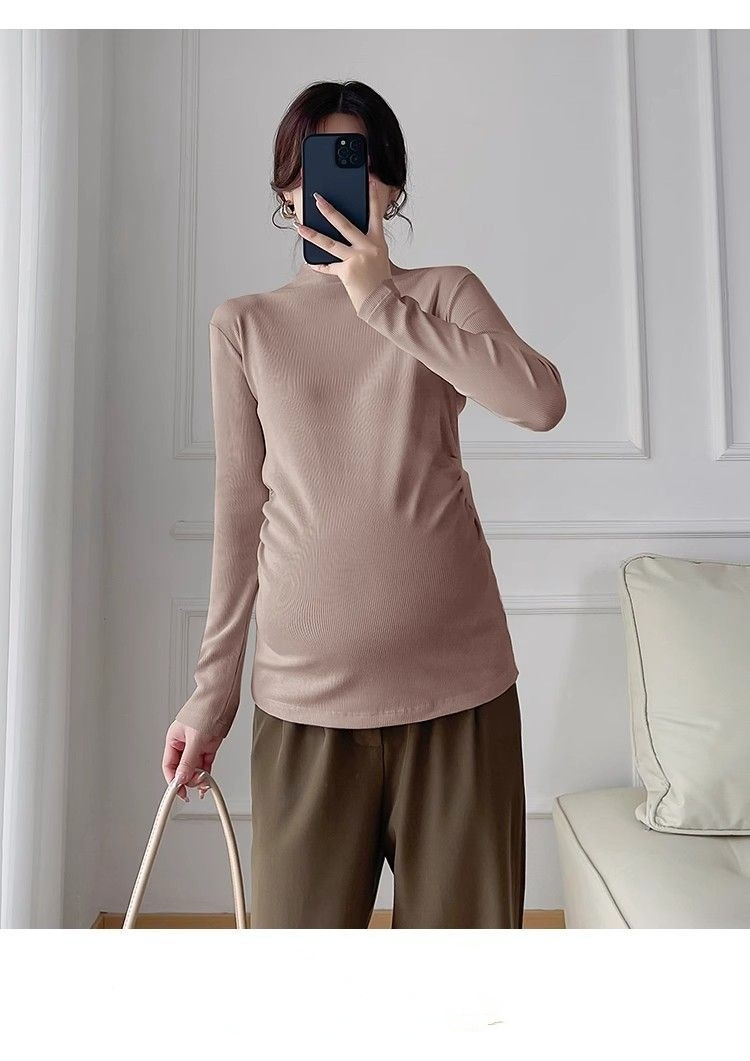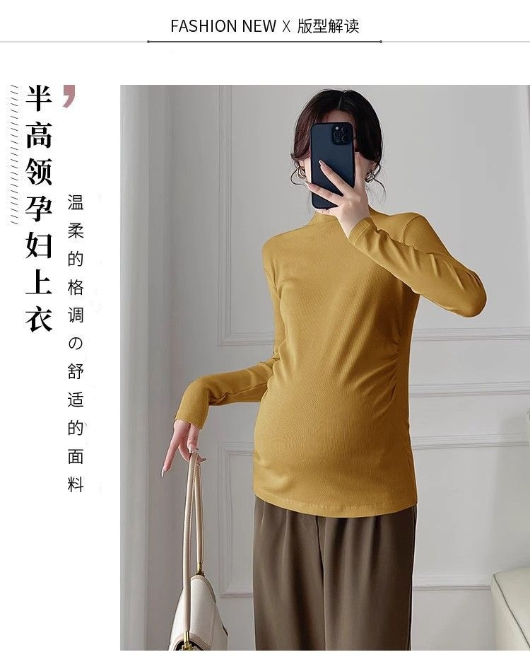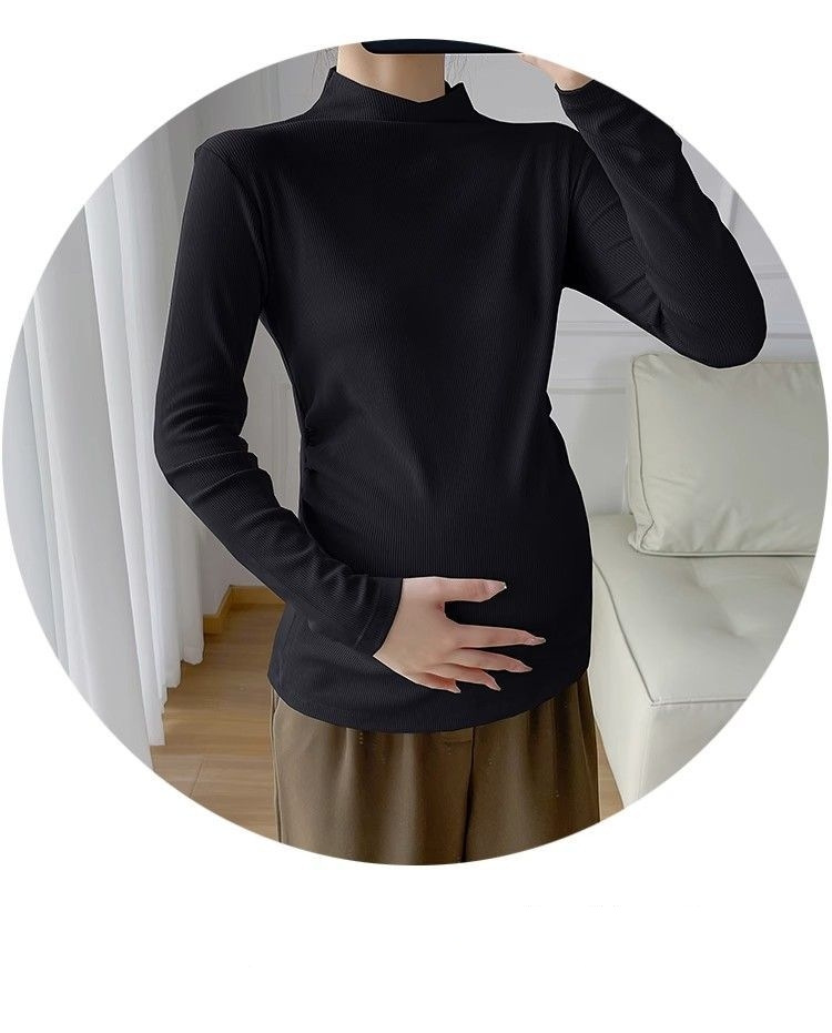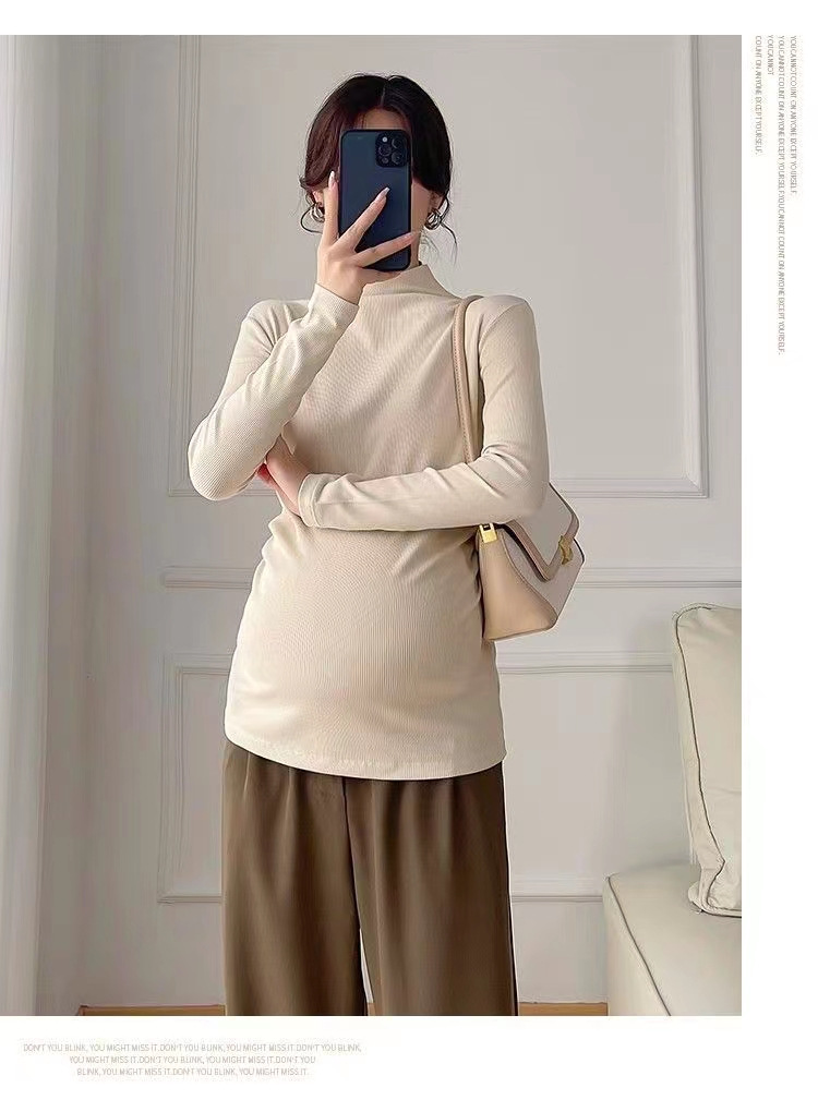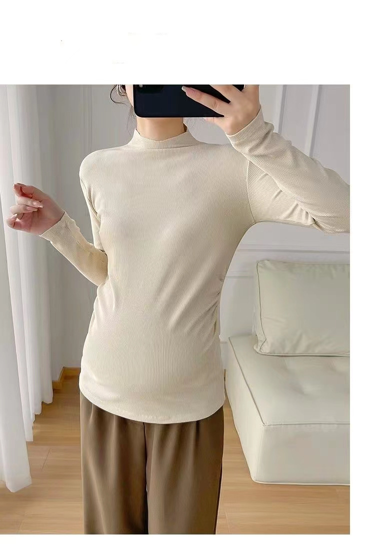 Одежда для беременных, осенняя одежда, бархатный свитер для беременных, Зимний новый теплый Однотонный свитер с высоким воротом, нижняя рубашка, топ, мода