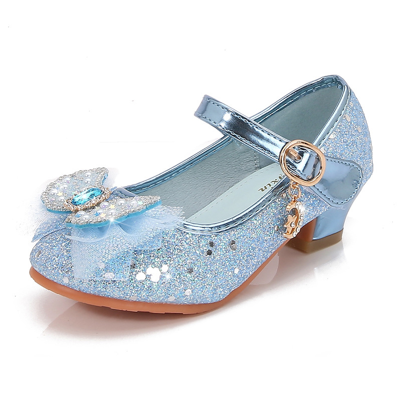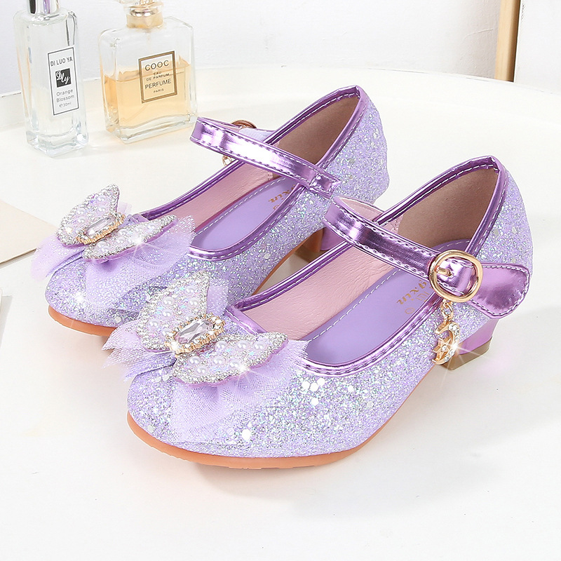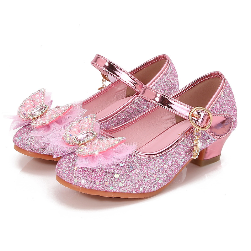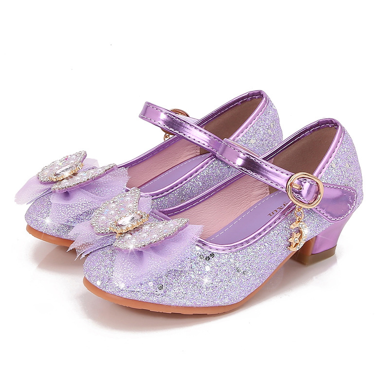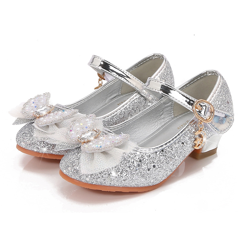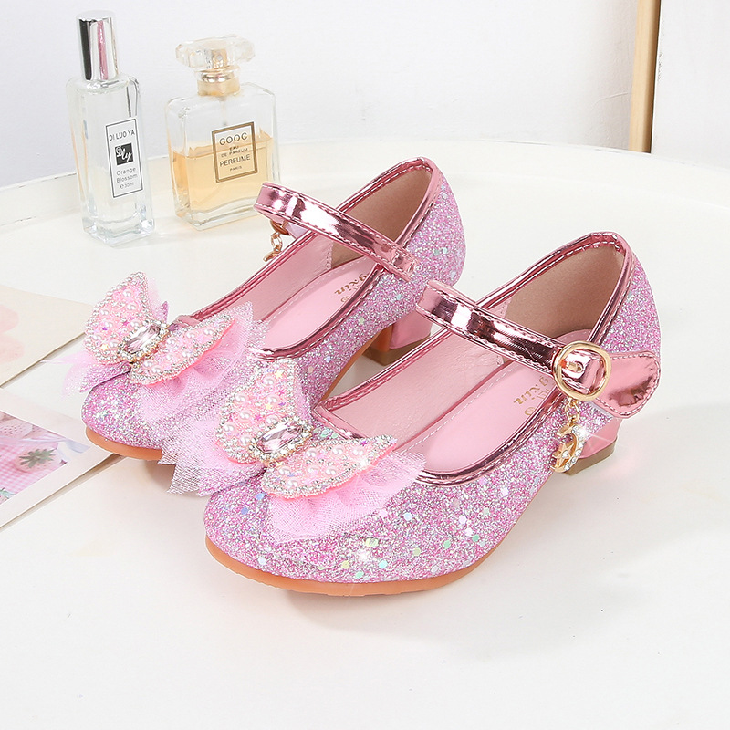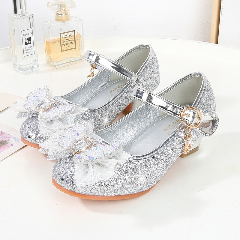 Детские туфли на высоком каблуке, весна и осень, новые туфли принцессы для девочек, одиночная обувь со стразами и бантом, детская кожаная обувь