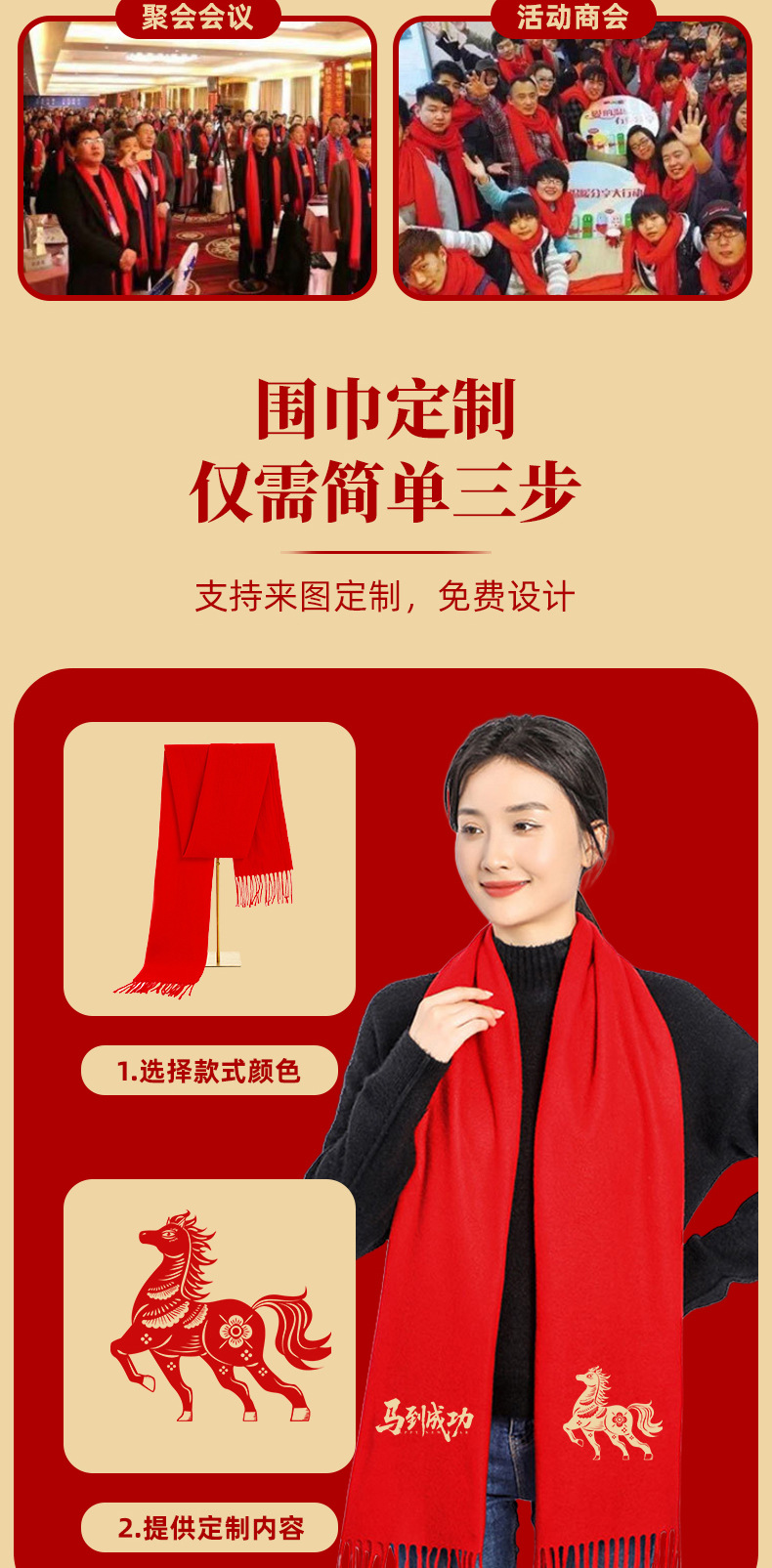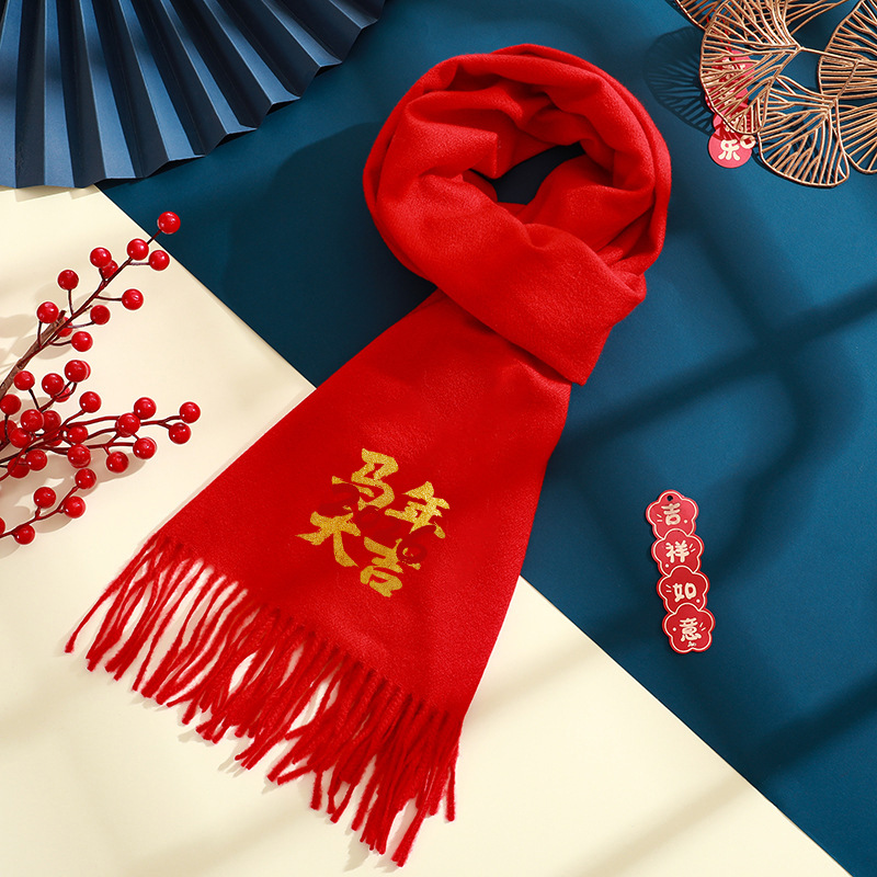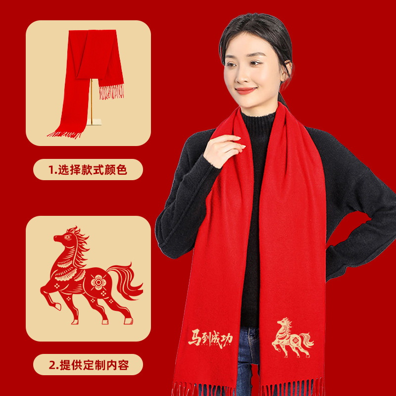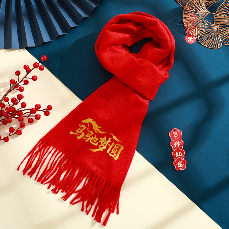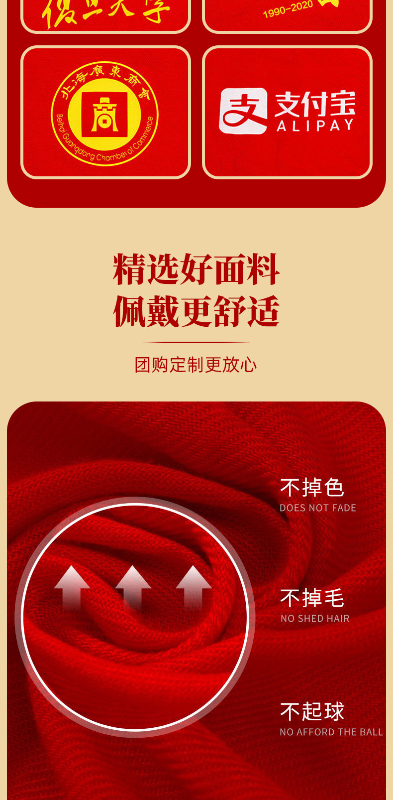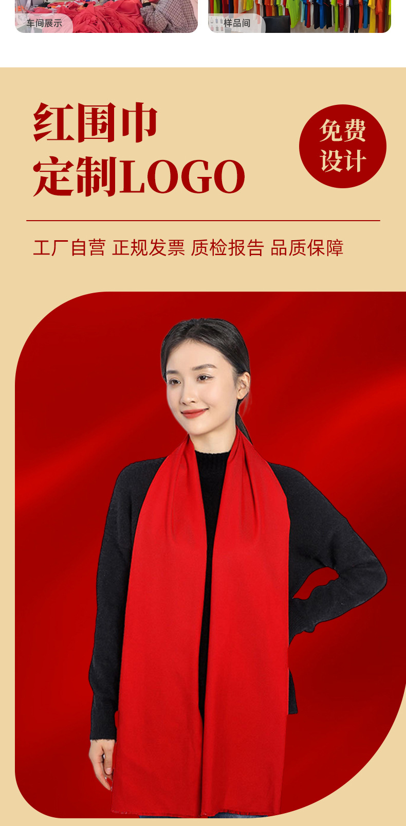 Красный шарф с крупной вышивкой красным логотипом, оптовая продажа красных шарфов в китайском стиле, оптовая продажа красных шарфов для торжественных мероприятий и ежегодных встреч