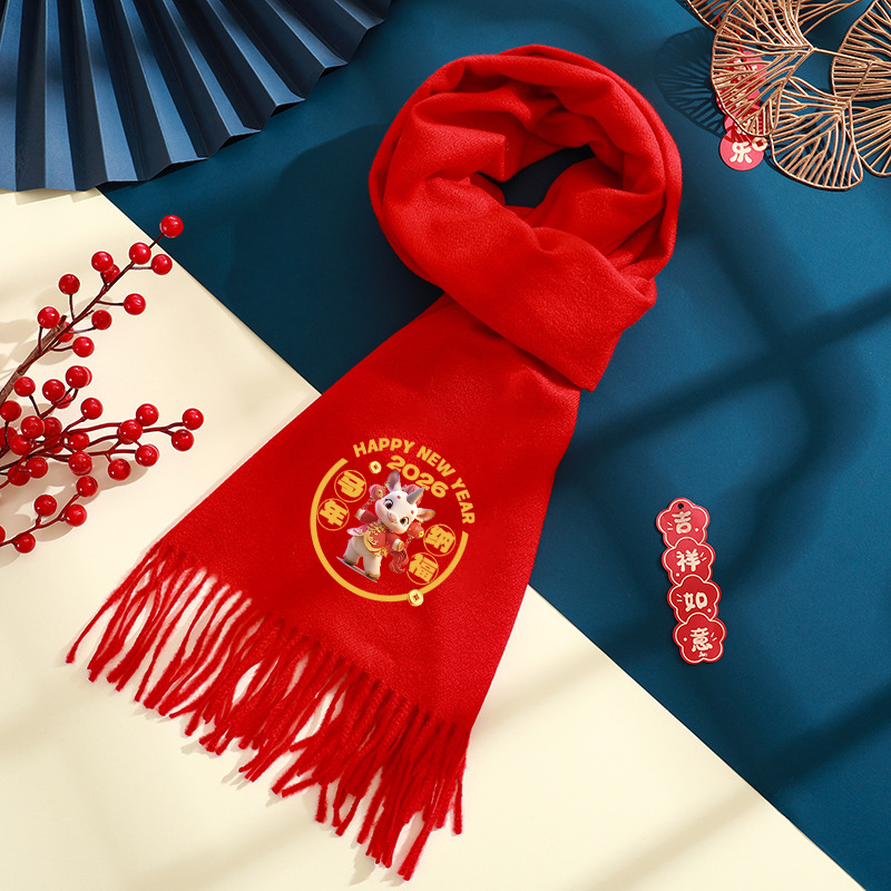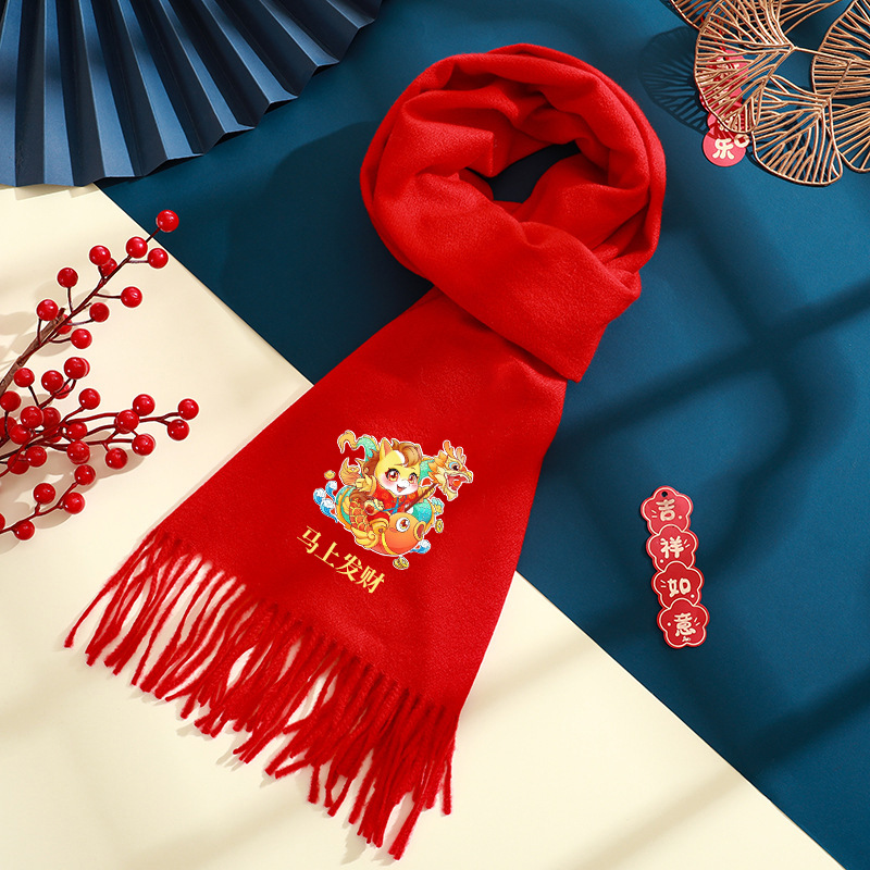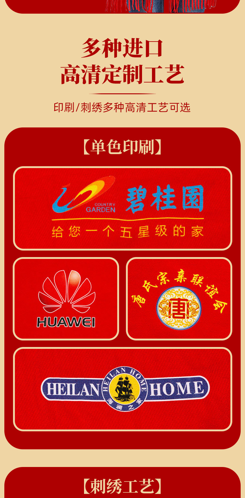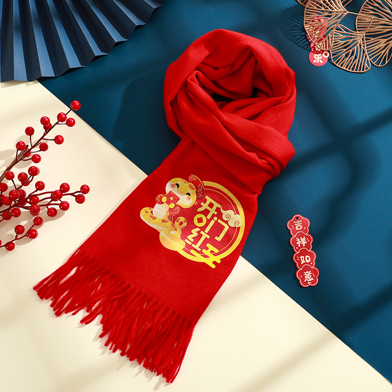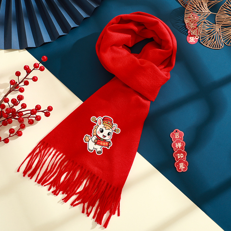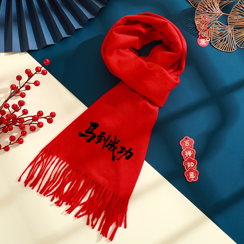 Красный шарф с крупной вышивкой красным логотипом, оптовая продажа красных шарфов в китайском стиле, оптовая продажа красных шарфов для торжественных мероприятий и ежегодных встреч