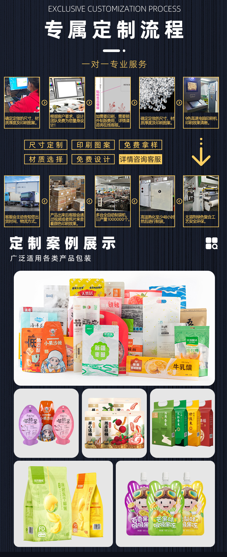 Вакуумные пакеты по индивидуальному заказу; Индивидуальная трехсторонняя герметизация; Индивидуальные пакеты из крафт-бумаги; Индивидуальная восьмигранная печать; Индивидуальные пакеты с застежкой-молнией; Индивидуальные пакеты из алюминиевой фольги; Индивидуальный мешок с носиком; Другие по индивидуальному заказу; Получите образец и свяжитесь со службой поддержки клиентов